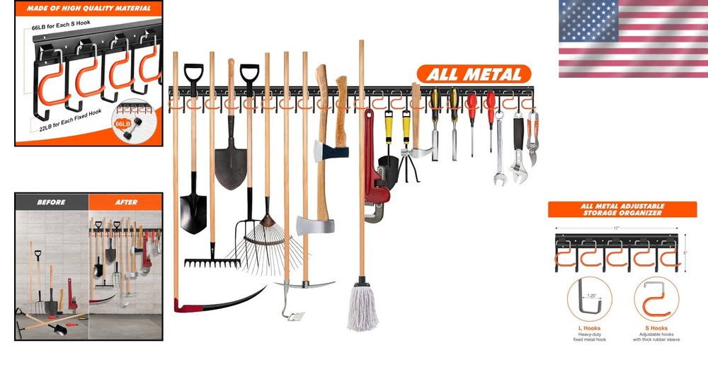 All Metal 68'' Garage Organizer with Adjustable Hooks - Effortless Installation ‹ › ‹ › ‹ › ‹ › ‹ › ‹ › ‹ › ‹ › All Metal 68'' Garage Organizer with Adjustable Hooks Transform your cluttered garage or shed into an organized sanctuary with our All Metal Garage Organizer, designed for effortless installation and unparalleled durability. Features: Quality Material: Crafted entirely from robust iron, both the backboard and hooks ensure long-lasting performance that far exceeds traditional ABS material. Effortless Assembly: Arriving fully assembled with hooks in place, this wall-mount storage system saves you from any tedious installation time. Large Capacity: With adjustable lengths ranging from 17-68 inches, our 4-pack of 17-inch tool holders adapts to your organizational needs seamlessly. Versatile Hook Design: Featuring both S and L-shaped hooks, the rubber-coated removable S hooks can bear loads up to 66 lbs, while fixed L-hooks support 33 lbs each. Simple Installation: Equipped with included screws and dowels, you can install in just four easy steps—no tools or assembly skills required. Benefits: Maximize your space by effectively managing tools in your garage or garden. Weather-resistant and rust-proof coating guarantees longevity, preventing wear from damp conditions. Keep heavy-duty items safely off the ground, reducing clutter and improving accessibility. Perfect for a variety of tools including mops, shovels, brooms, bicycles, and more. Why choose our All Metal Garage Organizer? Bid farewell to disarray with our superior All Metal 68'' Garage Organizer. Tailored for those who seek strength, versatility, and effortless usability, this organizer is your ultimate solution for clutter control. With its exceptional load-bearing capacity and easy installation, every corner of your garage can be maximized. Invest in organization excellence and reveal the beauty of a tidy space. Order your All Metal Garage Organizer today and embrace a more functional environment! Shipping Free & Fast Shipping - We offer free shipping to most of the USA with a normal delivery time of 3-7 days. However, due to the current situation, additional delivery time (up to 3 weeks) may be required for some items. Alternative Carriers - We may use alternative carriers (e.g. USPS, FedEx, UPS, etc.) to ensure your package arrives safely and on time. Due to the use of multiple carriers, we are unable to provide a tracking number automatically. Handling Time - Orders are processed and shipped within 1-2 business days of receiving cleared payment. Shipping Restrictions - Shipping to Alaska, Hawaii, Puerto Rico, Guam, and other US territories may incur shipping charges or delivery restrictions. Please contact us before ordering, or your order can be refunded/cancelled. State Restrictions - There may be restrictions based on your state of purchase. For example, certain items may not be shipped to California due to state regulations. Contact for Tracking Updates - If you require tracking updates or have any concerns about the delivery of your order, please feel free to contact us, and we will be happy to assist you. Return 30-Day Hassle-Free Returns - We want you to be completely satisfied with your purchase. If you are not, you can return the item within 30 days of receiving it for a full refund or exchange. Easy Return Process - To start a return, simply contact us and we will provide you with a prepaid return shipping label and detailed instructions. Restocking Fee - There are no restocking fees for returns. However, the buyer is responsible for return shipping costs if the return is not due to a seller's error. Refund Processing Time - Refunds will be processed within 5 business days of receiving the returned item in its condition. Payment We accept all major credit cards, PayPal, and Apple Pay for your convenience. Your payment information is secure and encrypted to ensure a safe and seamless transaction. Please complete your payment within 3 days of purchase to avoid any delays in shipping. Feedback Your feedback is extremely important to us. We strive to provide the best products and customer service possible. If you are satisfied with your purchase, please take a moment to leave us a positive review. If you have any concerns or issues with your order, please contact us before leaving negative feedback. We are committed to resolving any problems and ensuring your satisfaction. Contact Us If you have any questions or concerns, please feel free to out to our customer support team. You can contact us through the eBay messaging system. We are available Monday to Friday, 9:00 am to 5:00 pm EST, and we will do our best to respond to your inquiry within 24 hours. Buy it now and enjoy a pleasant shopping experience! Item Weight: 4.1 lb Item Height: 5 Inches Item Diameter: 17 inch Unit Quantity: 4 Features: Adjustable,Durable,Solid,Load-bearing,Easy to install,Rust-proof,Non-slip,Heavy-duty,Removable hooks,Rubber coated hooks,Wall mount,Free assemble Type: Tool Organizer Number of Items: 4 Material: Metal Number of Drawers: 0 Size: Large Capacity: 66 lb Color: Black Finish: Iron Unit Type: lb