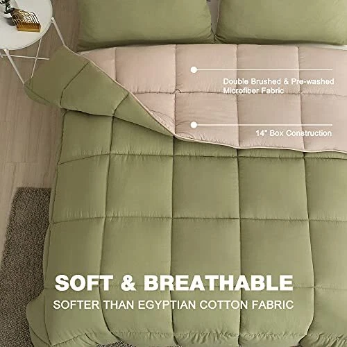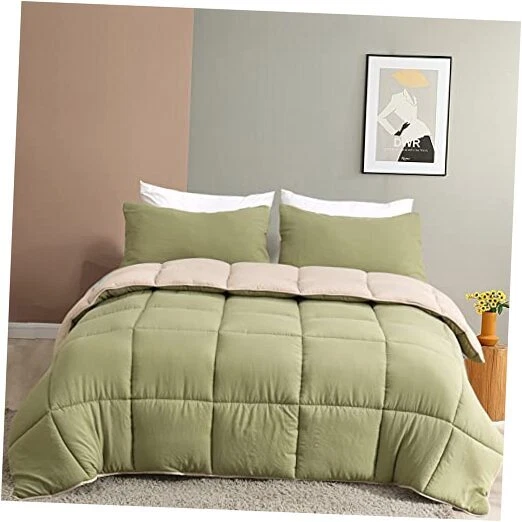 Return Policy Fast Delivery Trusted seller All Season Reversible Down Alternative Comforter - 3 Piece Ultra-Soft Air-Fluffy Breathable Eucalyptus Microfiber Comforter Duvet Set with Shams Queen, Moss Green/Light Brown) Product Description Efficient Moisture Transfer: Mixed microfiber enhances moisture and sweat transfer efficiency compared to standard fillers; provides a cool and breathable experience year-round, even for hot sleepers Ultra Soft & Breathable: Brushed peach-skin fabric offers superior softness and breathability compared to cotton; maintains a cozy temperature for comfortable sleep Valued Pack: Avaliale in Twin/Queen/King size; lightweight and breathable for versatile, all-season use Durable Construction: Features self-fabric hemming and box stitching to prevent filling leakage and clumping; corner tabs secure the comforter in place as a duvet insert Easy Care: Machine washable in cold water; tumble dry on low heat; ideal for those seeking a down alternative to goose-down feather duvets Shipping Returns Payment Shipping Shipping is FREE to all addresses other than APO/PO boxes in the lower 48 states. All our stock ships from US-based warehouses. Shipped via USPS or UPS (depending on location and package weight) Unless stated otherwise, all orders will ship within 24-72 hours of your payment being processed. Check our feedback to see the great reviews of FAST shipping we offer. Returns Seller does not accept returns Payment We currently accept payment via eBay managed payments only. Once payment is cleared, we will dispatch your shipment within 1-3 business days. Please refer to the "Shipping" tab for more information regarding shipping speed to your destination.