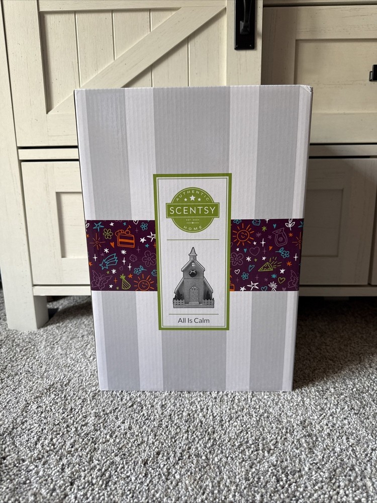 The All is Calm Scentsy Warmer is a new in box electric wax warmer designed for adults. This scent diffuser is specifically themed around Christmas, making it a perfect addition to your holiday decor. With a white color and a size of full, this Scentsy Warmer is both stylish and functional. It is powered by a wall plug-in and is ideal for creating a peaceful ambiance in your home, making it a great choice for relaxation or adding a festive touch to your space.