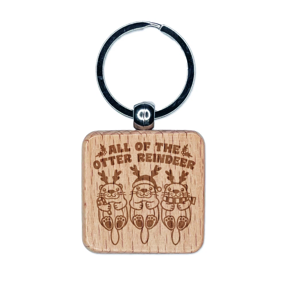 All of the Otter Reindeer Christmas Xmas Engraved Wood Square Keychain Tag Charm