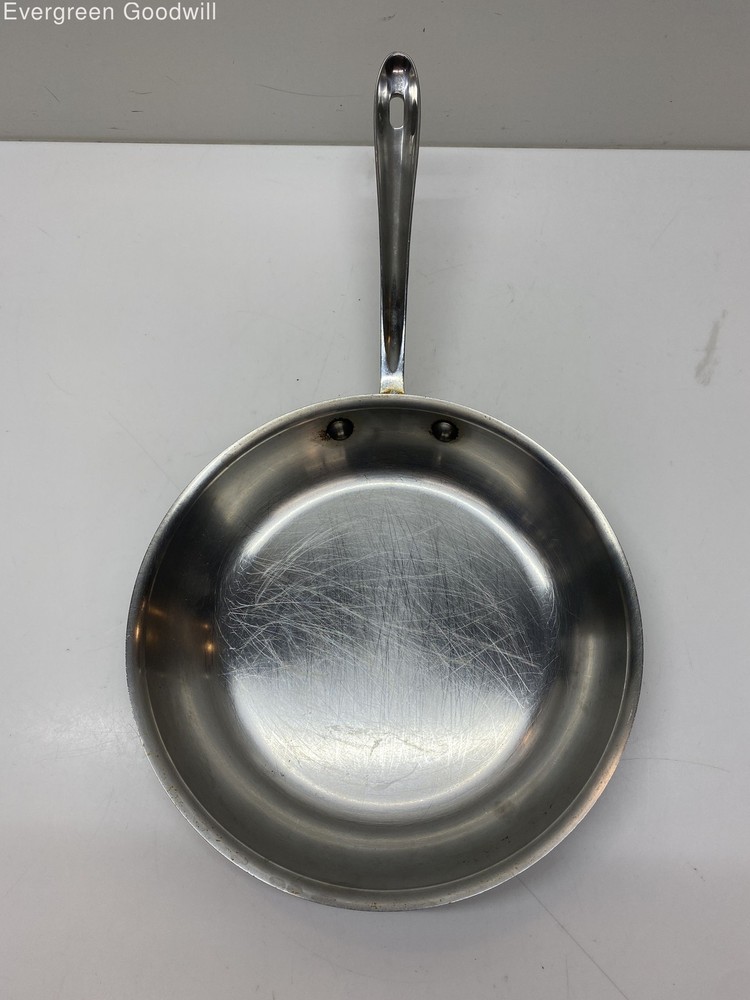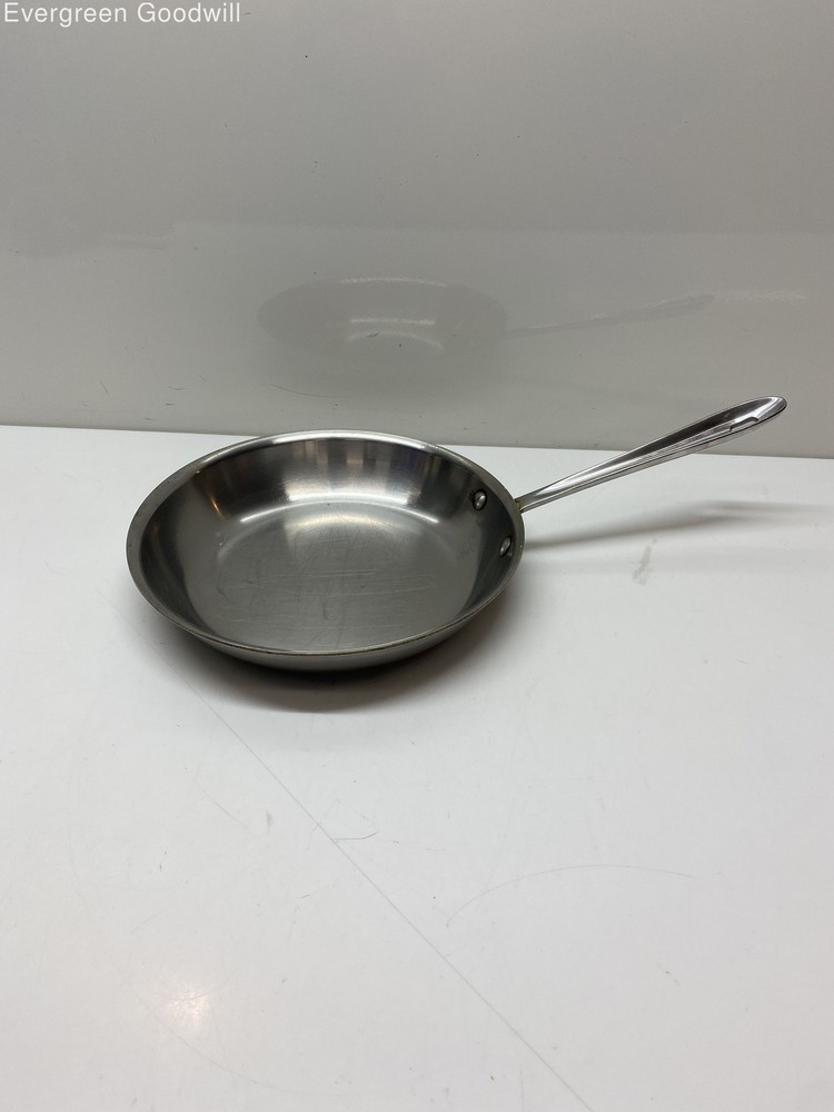 All Clad D3 Stainless Steel 10" Fry Pan Brand: All Clad Type: D3 Stainless Steel 10" Fry Pan Condition: Good - shows some sign of wear Evergreen Goodwill helps people get jobs across Northwest Washington by offering high-quality free job training, education and job placement. We empower individuals to overcome barriers to working by providing comprehensive support and connecting them with life-changing job opportunities, ensuring they are career-ready and can support themselves and their families. ***Disclaimer*** All items were donated to Evergreen Goodwill of Northwest Washington with no history or provenance. The auction is for all items pictured. Items may need servicing and/or benefit from a cleaning upon arrival. Please see photos for additional details and feel free to ask questions. PAYMENTS Please note that eBay will automatically cancel your entire order if the oldest item exceeds 4 days without payment. Once an order is canceled, we are unable to re-invoice, and the item will be relisted. To request a combined shipping invoice, please send one request within 2 days of winning your first item to avoid cancellation of your order. After a combined invoice has been sent, we are unable to add additional items to it. SHIPPING Local pickup is not available at this time. International shipping is not available at this time. We offer combined shipping as long as items will ship safely together. Auctions must end within 2 days of each other to be eligible for combined shipping. Please hold off on payment until all auctions have ended then proceed to checkout. Please do not pay for any items individually if you wish to have them combined - they must be paid at the same time. Items listed for flat-rate shipping are not eligible for combined shipping. PO Box addresses will require USPS shipments as FedEx Ground will not deliver. If FedEx is selected we may need to invoice for additional shipping costs.