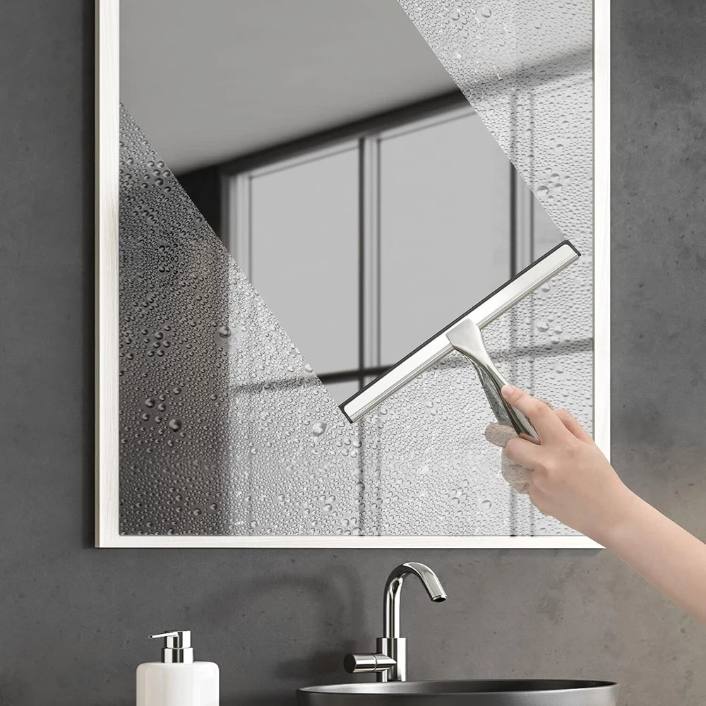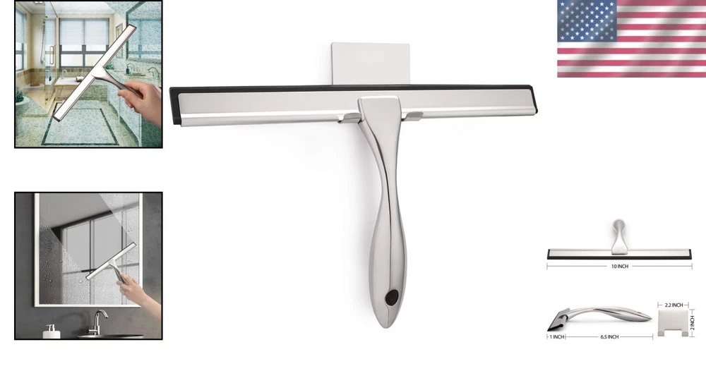 Scent: Scent Free Style: Modern Item Length: Shower Squeegee Color: Silver gtin13: Does not apply Form: 10 Inch Brand: Unbranded Item Height: Shower Squeegee UPC: Does not apply For: Shower Doors Features: EASY TO USE & STORE, All-Purpose, Streak-Free Shine, Ergonomic Design, Lightweight Handle, Waterproof Adhesive Hooks, Convenient Cleaning, Quick-Drying Action Item Weight: n/a Size: 10-inch Personalize: No Type: Shower Squeegee Volume: n/a Product Dimensions: 10"w X 7.5"h Item Width: Shower Squeegee Capacity: n/a Number in Pack: 1 Blade Material: Stainless Steel