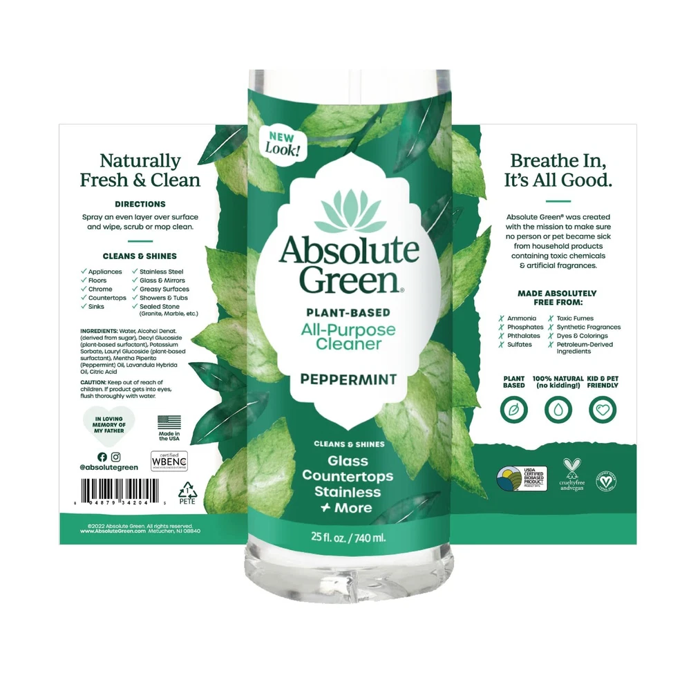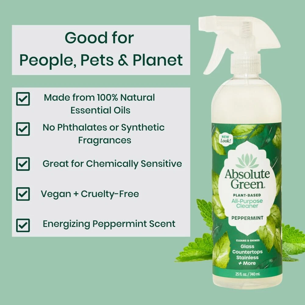 Keep your home clean without the worry of harmful chemicals being breathed in by you or your with the All Purpose Cleaner Peppermint from . provides products that really work, smell great, and have no harmful chemicals or artificial fragrances. Made from 100% natural ingredients and pure essential oils, they've created safe and all-natural solutions for you, your family, your pets, and our earth. NATURAL INGREDIENTS. 100% natural ingredients with pure peppermint essential oil. Plant-based, biodegradable and vegan. *Contains no vinegar which dulls and etches stone counters and hardwood floors* SAFE, HEALTHY HOME. -Free, Botanical cleaner that is safe to use around chemically sensitive people, your family, , and pets too!, EFFECTIVE. Cleans and cuts everyday grease and grime on Kitchen + Bathroom surfaces, USES: Countertops, Stainless Steel, Sealed Stone (granite, marble), Appliances, Glass, Sinks, Showers, Tubs, Mirrors, Windows, tiles, pet areas, cars and so much more! FRESH SCENT. 100% Pure + Natural Peppermint Essential Oil. Cleaning Vibe: cool breeze, a fresh mint sprig, peppermint patty on a ski slope :) CERTIFIED: Bio-Based, Cruelty-Free + Vegan, WBENC (Woman-Owned), Small Business, Made in USA NEW HIGH QUALITY SPRAYERS: Sturdy sprayers with mist, stream and a locking feature. Turn the sprayer head for your choice.