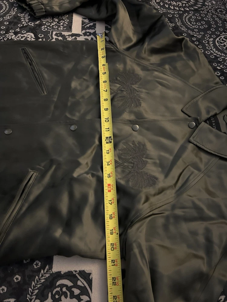 AllSaints embroidered palm satin coach jacket Size S