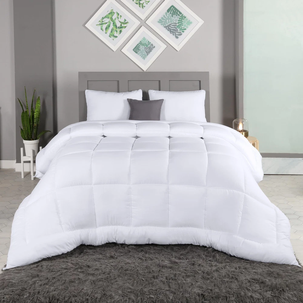 Comforter Duvet Insert: King size Comforter Duvet Insert measures 90 inches x 102 inches. Box Style Stitching: Crisp looking comforter features an elegant box stitching that prevent the fill from shifting. Siliconized Fiberfill: Extremely soft material with siliconized fiberfill alternative filling provides a comfy and cozy feel. All-Season Comforter: The classic style of the down alternative comforter makes it suitable for all weather conditions to ensure a blissful sleep every night. Machine washable: Machine wash in the gentle cycle with cold water, sun-dry or tumble dry no heat.