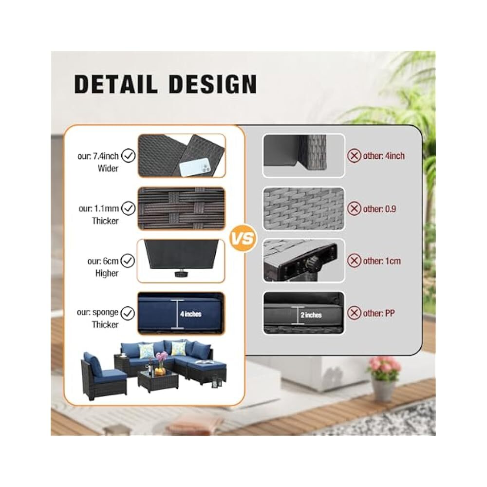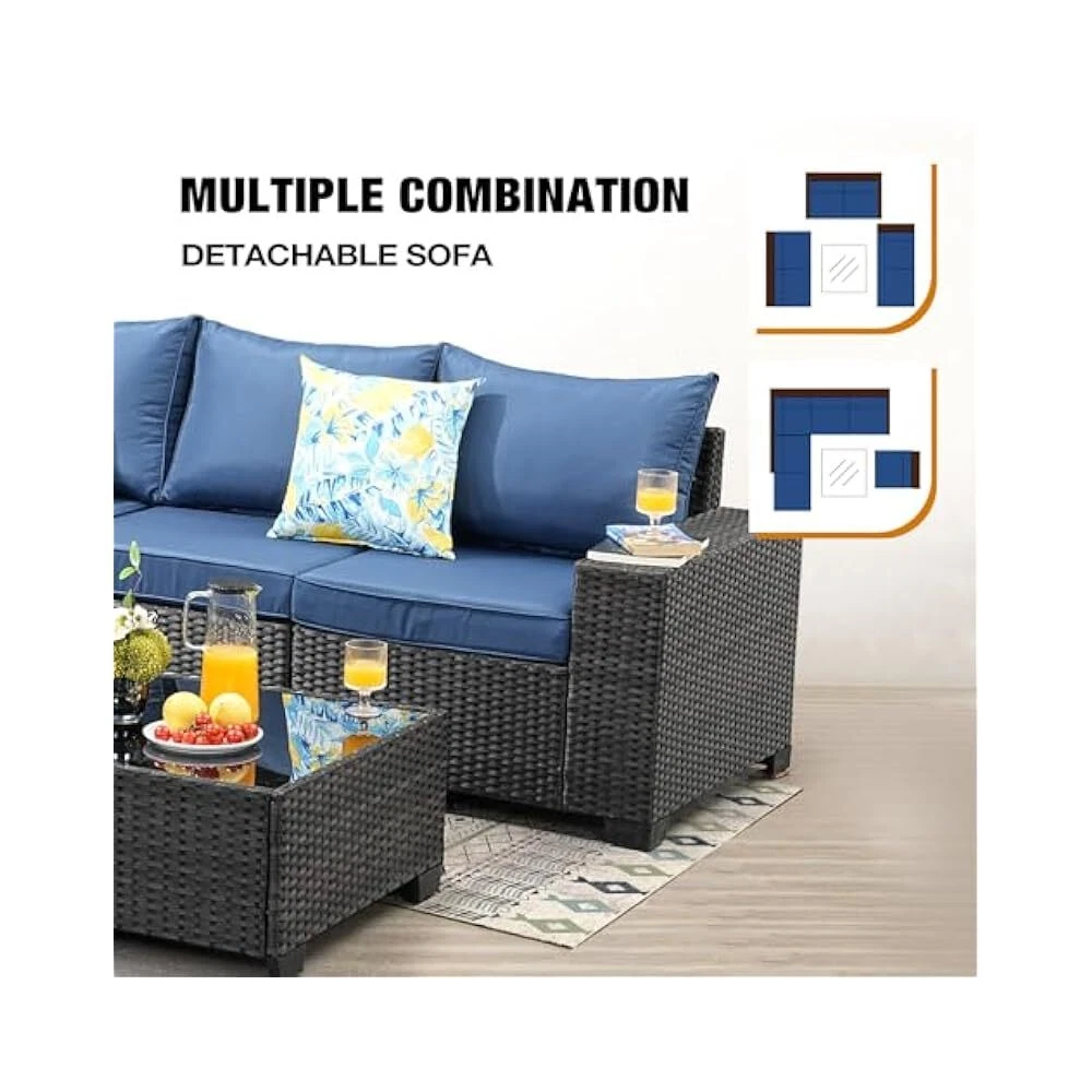 $ 194.45All-Weather Wicker 5-Piece Patio Sectional Sofa Set with Navy Cushions