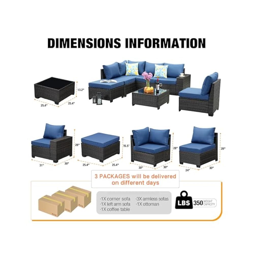 STORE NEW ARRIVALS ADD TO FAVORITE VIEW FEEDBACK Wicker Patio Sectional Set, 7 Pieces, Comfortable Cushions, All,Weather Design Description 7-Piece All-Weather Patio Furniture Set – Create Lasting Family Moments Outdoors! Transform your outdoor space into a cozy haven for family and friends with this 7-piece patio furniture set. Crafted from durable, all-weather wicker, this sectional conversation sofa offers comfortable seating for countless gatherings. The set includes a spacious sofa, individual ottomans for relaxed lounging, and a stylish glass table – perfect for family meals or quiet moments with a book. Designed for lasting enjoyment, this rattan patio seating is built to withstand the elements, ensuring years of use. The included cushions provide exceptional comfort, inviting you and your loved ones to unwind and create cherished memories. Ideal for porches, poolside areas, or any outdoor living space, this set provides a practical and inviting solution for enjoying quality time together. As a family who understands the importance of value, we know you'll appreciate the combination of durability, comfort, and style this set offers. It’s more than just furniture; it's an investment in creating a space where your family can connect and thrive. Enjoy the peace of mind knowing you've chosen a reliable and attractive addition to your home. This set is designed to bring people together, fostering connection and creating a welcoming atmosphere for everyone. It's the perfect place to build memories that will last a lifetime. Bring the indoors out and embrace the joy of outdoor living with this family-friendly patio set. Product Features Durable, all-weather wicker construction Sectional conversation sofa design Includes spacious sofa and individual ottomans Stylish glass table included Comfortable cushions for relaxed lounging Suitable for porches, poolside areas, and outdoor living spaces Designed for lasting enjoyment and creating cherished memories Technical Specifications Material All-weather wicker, Glass, Rattan Set Includes Sofa, Ottomans, Table Intended Use Outdoor Living ABOUT US We offer the best prices around on high quality products. Our E-store includes media such as books, movies, music and games while offering electronics, toys, sporting apparel, clothing, tools, general home, garden items and more. SHIPPING We are always working hard to ensure your package arrives as soon as possible. Please understand that some factors like weather, high postal traffic, and the performance of shipping companies are outside of our control. For shipping outside of the continental USA, we only use eBay's Global Shipping Program.The item is shipped to KY and then sent to the rest of the world. International customers are responsible for all duties and taxes. Continue to check out in order to calculate costs for shipping the item to your country. Messages regarding eBay's Global Shipping Program MUST be directed at eBay EXCLUSIVELY. RETURNS We offer a 30-Day Return Policy on items which you are not completely satisfied with. You have the option for a full-refund or an exchange of the item. No returns are available on items shipped outside of the USA. CUSTOMER SATISFACTION We try our very best to make sure every customer is completely satisfied. If there's a problem, message us! We're happy to help. WE ACCEPT Copyright © 2021 AutoDS. | All Rights Reserved