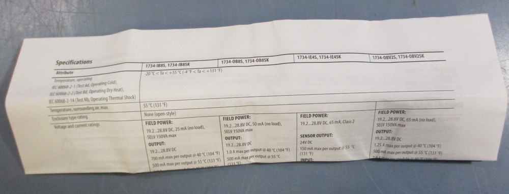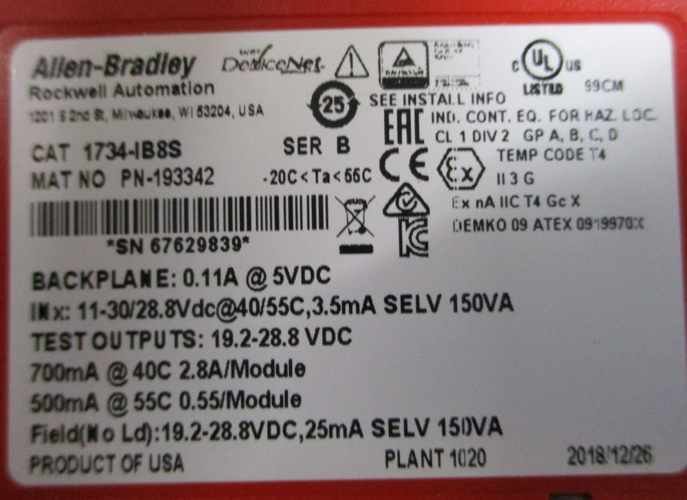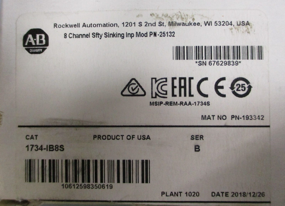 Input Module For sale is an Allen Bradley 1734-IB8S Ser. B 8 Channel Safety Sinking Input Module 193342. Item appears new and in excellent condition. Will come as shown and with what is pictured. May show minor imperfections from shelf wear but nothing that will impact performance. Thank you for looking and please let us know if you have any questions. eTech Surplus Rochester, NY Shipping: Charged according to location. Sales tax of 8% will be charged to New York State residents and businesses. We at eTech Surplus strive to honestly and accurately describe each item we sell. Please feel free to contact us with any questions. International Buyers - Please Note: Import duties, taxes and charges are not included in the item price or shipping cost. These charges are the buyer's responsibility. Please check with your country's customs office to determine what these additional costs will be prior to purchasing. International Buyers - Please Note: Import duties, taxes and charges are not included in the item price or shipping cost. These charges are the buyer's responsibility. Please check with your country's customs office to determine what these additional costs will be prior to bidding or buying.