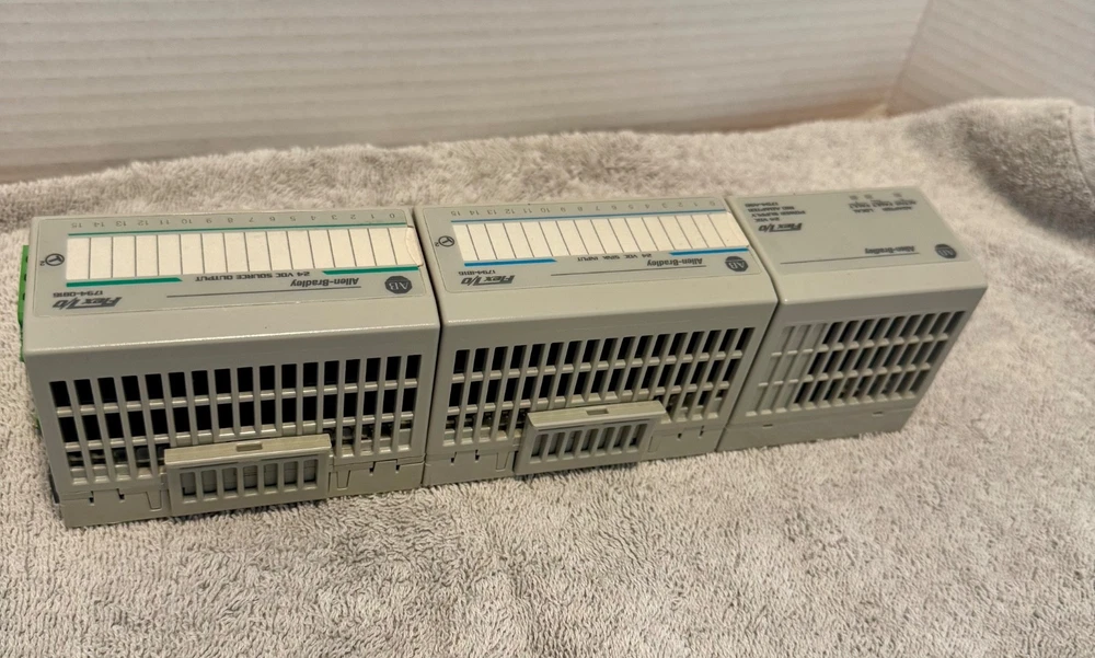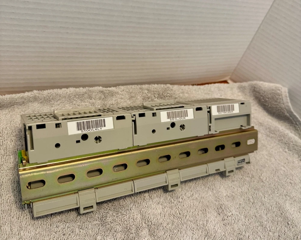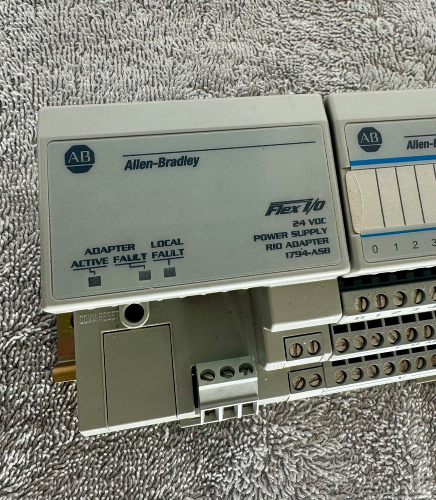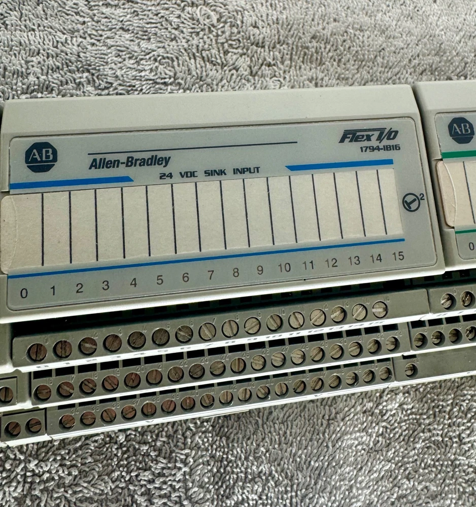 The Allen Bradley Flex I/O 1794 Complete I/O module is a high-quality PLC input/output module designed for industrial automation and motion control systems. Made by Allen-Bradley in the United States, this analog module is compatible with the FlexLogix controller platform. This module provides reliable and efficient communication between the controller and various peripheral devices, making it an essential component for a seamless automation process. Included: Flex I/O 24 volt power supply 1794-ASB, 1794-1816 24 VDC Sink input, 1794-0816 24 VDC Source output, All mounted on a din rail.