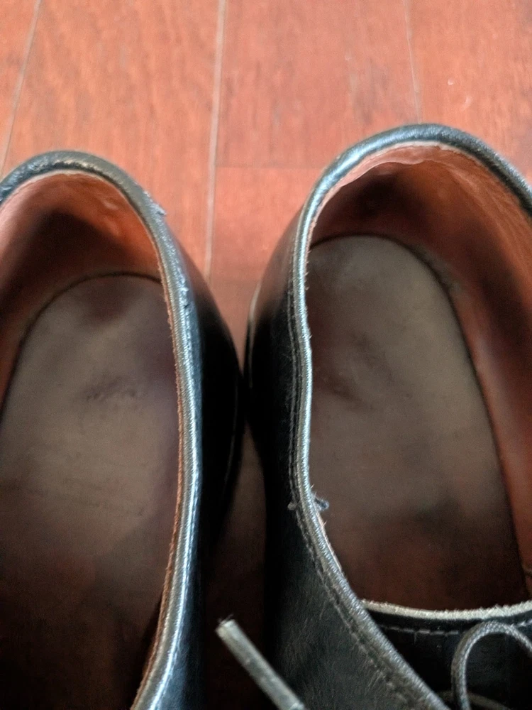 Lining Material: Leather Closure: Lace Up Type: Dress Department: Men Country of Origin: United States Season: Fall, Spring, Summer, Winter Brand: Allen Edmonds Shoe Width: EEE EU Shoe Size: 42 Theme: USA Style: Derby UK Shoe Size: 8 Color: Black US Shoe Size: 9.5 Model: Delray Product Line: Delray Insole Material: Leather Outsole Material: Leather Upper Material: Leather Toe Shape: Round Toe Pattern: Solid AU Shoe Size: 8.5 Features: Split Toe