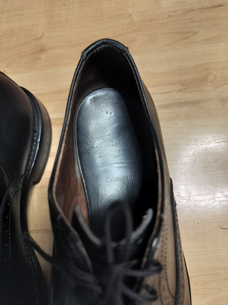 The Allen Edmonds Fifth Avenue Men's Size 9D Black Dress Casual Oxford Shoes 5705 are high-quality leather shoes with a classic and modern style. Featuring a solid black color, closed toe, lace-up closure, and arch support, these shoes are perfect for both dress and casual occasions. Made in the United States with leather lining and outsole, they provide comfort and performance with adjustable features. The brand's reputation for quality and craftsmanship is evident in this stylish and timeless shoe.