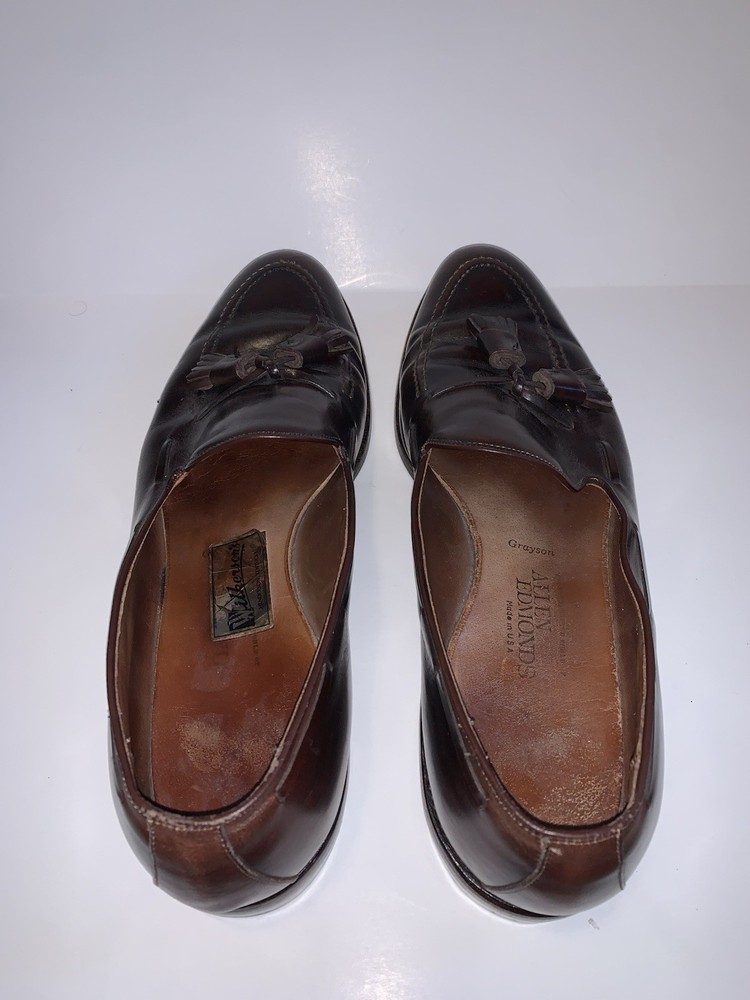 The Allen Edmonds Grayson Brown Leather Tassel Loafers are a stylish and high-quality pair of dress shoes made in the USA. These slip-on loafers feature a solid brown color with tasseled accents, perfect for adding a touch of sophistication to any formal outfit. Crafted with leather upper material and lining, these shoes are durable and comfortable for all-day wear. Ideal for men looking for a classic and American-made shoe option, these loafers are a great choice for summer, fall, and spring seasons.