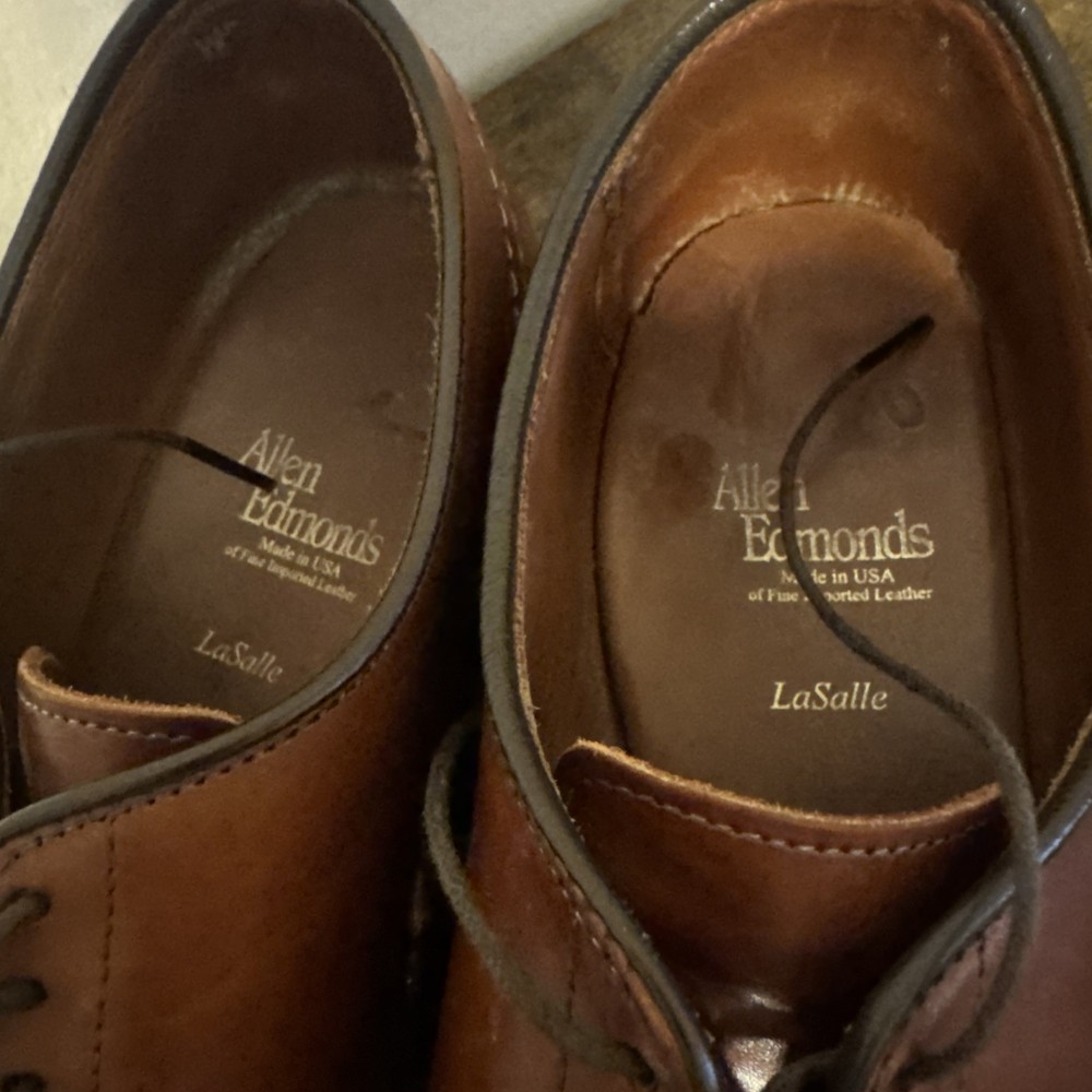 The Allen Edmonds Men's LaSalle Oxford LaceUp in size 9D is a high-quality dress shoe perfect for formal occasions. Made with premium leather materials and featuring a solid Chili color, this lace-up shoe boasts a classic split toe design. Crafted in the United States, this shoe is a stylish and durable choice for men looking for a sophisticated and well-crafted footwear option. The Allen Edmonds brand is known for its exceptional craftsmanship and attention to detail, making this shoe a reliable and fashionable choice for any gentleman's wardrobe.