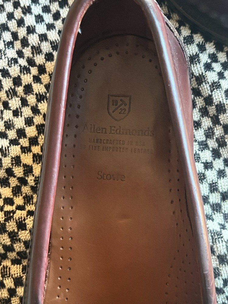 The Allen Edmonds Stowe Men's Tassel 14 is a stylish and sophisticated dress loafer in a solid brown color with tasselled accents. Made with high-quality leather, this slip-on shoe features a leather lining, insole, and outsole for ultimate comfort and durability. Perfect for the summer, fall, and spring seasons, these loafers are a great addition to any man's wardrobe, adding a touch of elegance to any outfit. With its classic design and exceptional craftsmanship, the Allen Edmonds Stowe loafers are sure to make a statement.