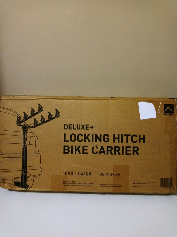New In Box Allen Sports Deluxe Quick Install Locking Hitch Bike Rack. We didn't realize our SUV wasn't able to have a hitch installed, so we never used this or even opened the box. Bought new for $128.60 The bike rack is high-quality and durable and designed for easy installation and secure transport. This hitch rack has a capacity to hold up to 2 bikes, featuring a sleek black color and a sturdy construction weighing 70 lbs. Its hitch mount design ensures a stable and secure connection to your vehicle, making it an ideal choice for cyclists looking to transport their bikes safely and conveniently.