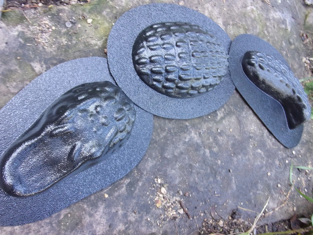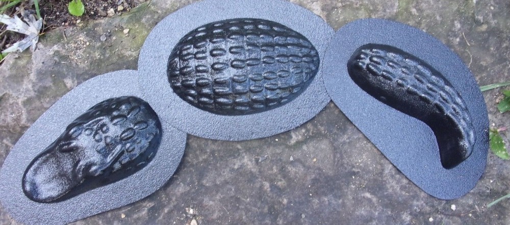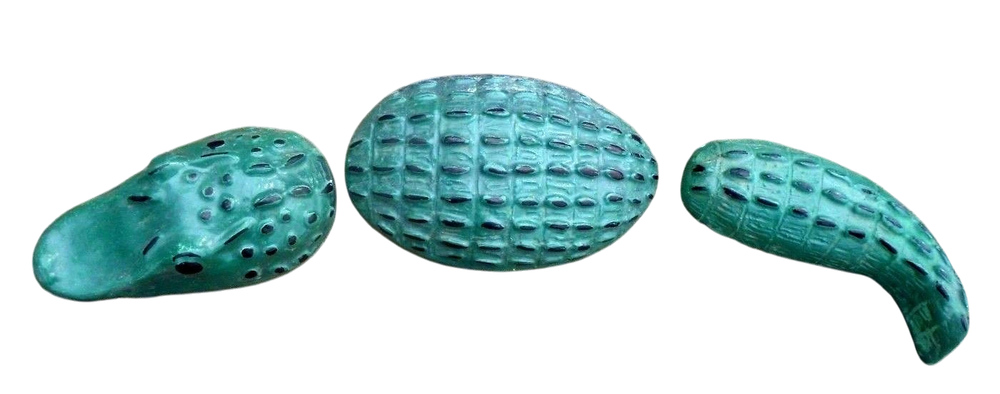 Three-piece alligator mold. Total in size 18"L x 4"W at the widest part. You are buying a reusable plastic mold to cast these fun gators that will look great in any garden or water area. Mix and match will all the fun crocodile moulds we have to offer. Easy to make this cute fella. Head measures 6"L x 3"W. Middle measures 6"L x 4"W and the tail measures 6"L x 2" W.