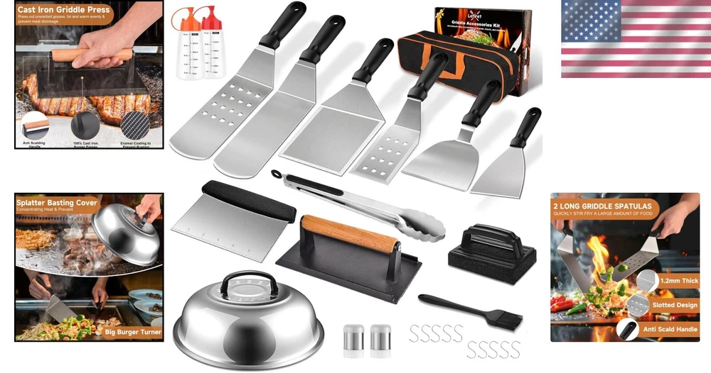 All-in-One Griddle Accessories Kit, 27-Pcs Stainless Steel Set with Storage Bag