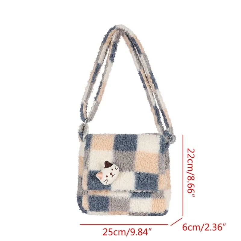All-matching Plush Crossbody Bags for Women Flap Bag Plaid Shoulder Bag Ins Features: and high plaid shoulder bag is plush material, comfortable and fashionable. All-matching crossbody bags, enough capacity for daily supplies(necessities), this handbag for girls your basic storage needs. Comes with soft shoulder strap for versatile styling, so you can use it as-a tote purse, bag, shoulder bag or crossbody bag according to your needs. What a-great shoulder bag! Pretty your friend or girls on Christmas Day, Thanksgiving Day, New Year and Birthday. As-a fashion statement, you will get so much attention and compliments for your unique taste, goes well with and skinny jeans in spring, fall and winter. Specifications: Plush Size: approx 21x6x9cm/8.27x2.36x3.54'' Color: Blue Package Includes: 1x Shoulder Bag note: Please allow 1-2cm errors due to manual measurement. Due to the difference betweeen different monitors,the pic may not reflect the actual color of the item.