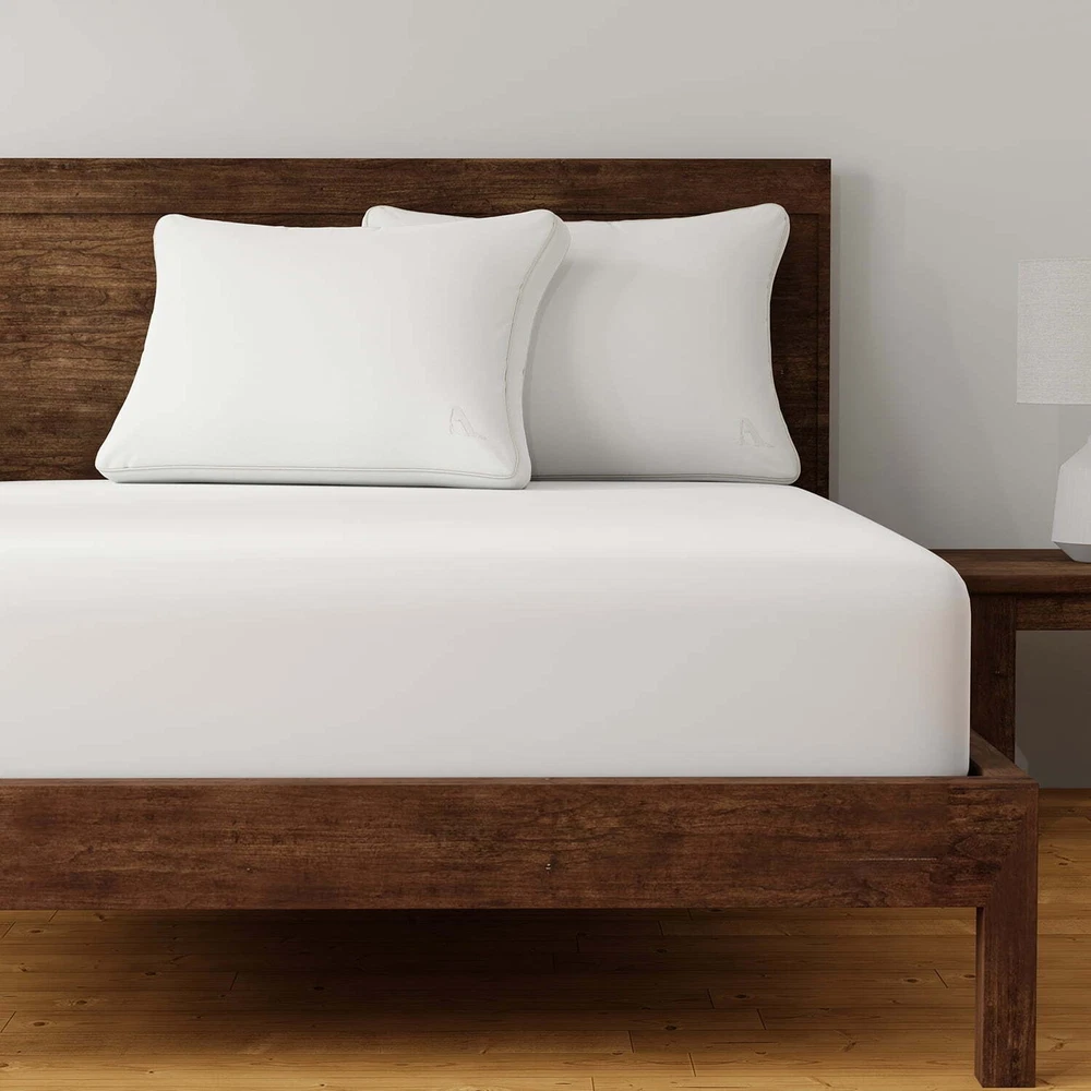 Product details Get a great night’s sleep with the Allswell Down Alternative Pillow. The 400-thread count outer cover is crafted from a luxuriously soft Tencel™ Lyocell fabric blend. The plush fill offers a down-like touch, firm enough to accommodate all sleep positions. The 2-inch side gussets provide support for your head and neck so you wake up feeling refreshed and rested. The machine washable, pillow arrives compressed, and space-saving packaging and refluffing is a breeze: place pillows in a dryer for 5 to 10 minutes on the fluff cycle. ThePillow Arrives Compressed in space-saving packaging. To re-fluff after compression, simply place in a dryer for 5-10 minutes on the fluff cycle Ideal for All Sleepers firm structured comfort Plush Durable Fiberfill for a down-like feel Supports Head & Neck with 2-inch side gussets Luxuriously Soft Cover 400 thread count Tencel™ Lyocell fabric blend Machine Washable for easy care Easy Care Instructions Machine wash cold, only non-chlorine bleach when needed tumble dry on delicate/low heat 60+-6 C or 140+-10 F. Max dryer exhaust temperatures vary by brand. It is recommended that the lowest dryer temperature be utilized and that the item be removed when it is dry rather than when the dryer stops running, do not iron