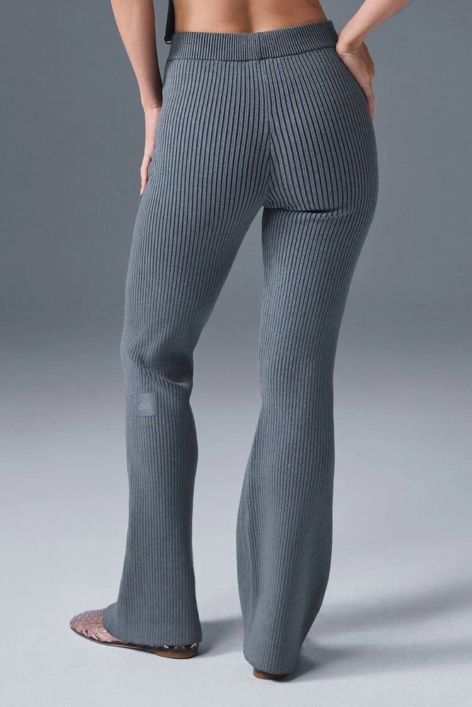 Alo Yoga Blue Steel Denim Knit High Waist Flare Pant Small. Condition is New with tags. Shipped with USPS Ground Advantage.