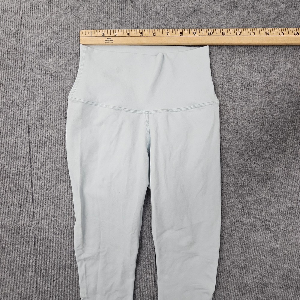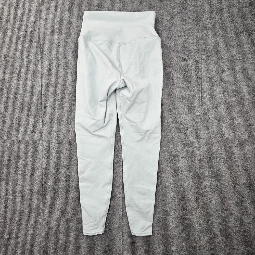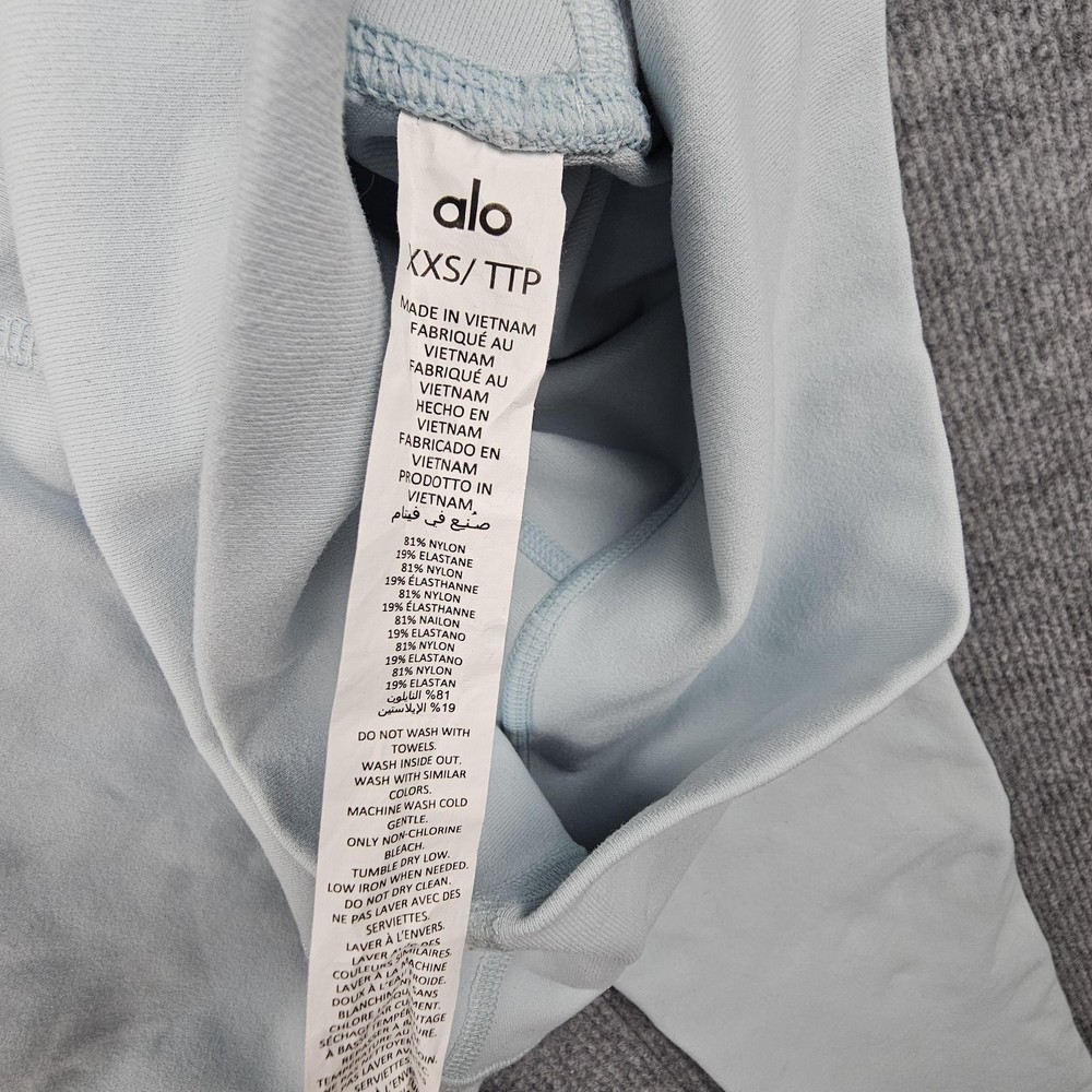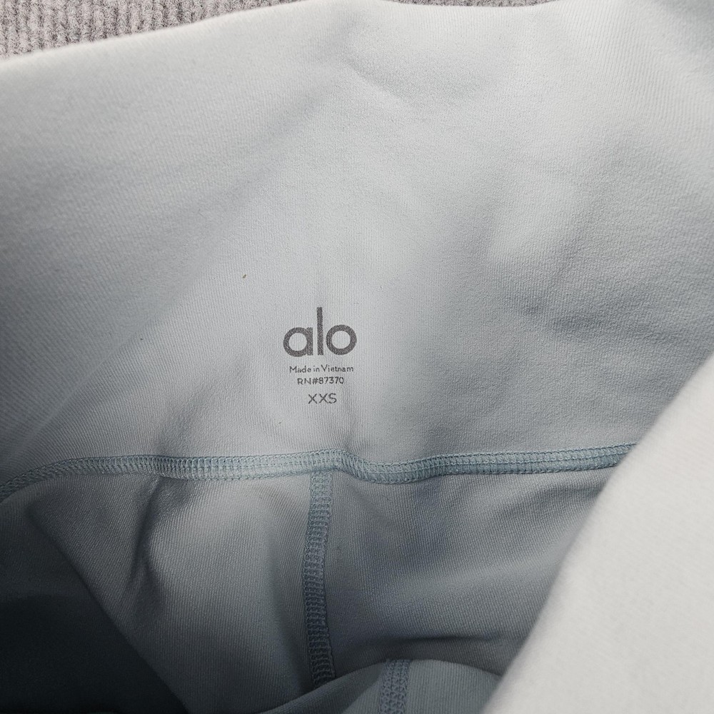 Alo Yoga Leggings Womens XXS Light Blue High Waist Stretch Athletic Activewear Condition: Gently worn, no visible flaws Size: XXS (Extra Extra Small), as shown on interior tag Color: Light blue High waist design for supportive fit Material: 81% nylon, 19% elastane (as shown on care label) Made in Vietnam Super soft and stretchy, ideal for yoga, gym, or everyday athletic wear All visible logo markings and brand tags shown in photos Approximate flat measurements can be found in photos for fit reference