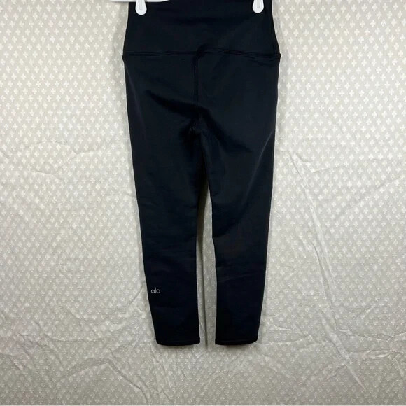Alo Yoga Women Leggings Sz XS Black High Rise Cropped Activewear Workout • In great condition • Pre-owned item • Pictures show any signs of possible wear • Size XS • Measurements: waist laid flat 11.5” inseam 21” rise 10” • Ships quickly! C16 Style: Sporty gym athletic workout lifting yoga athleisure