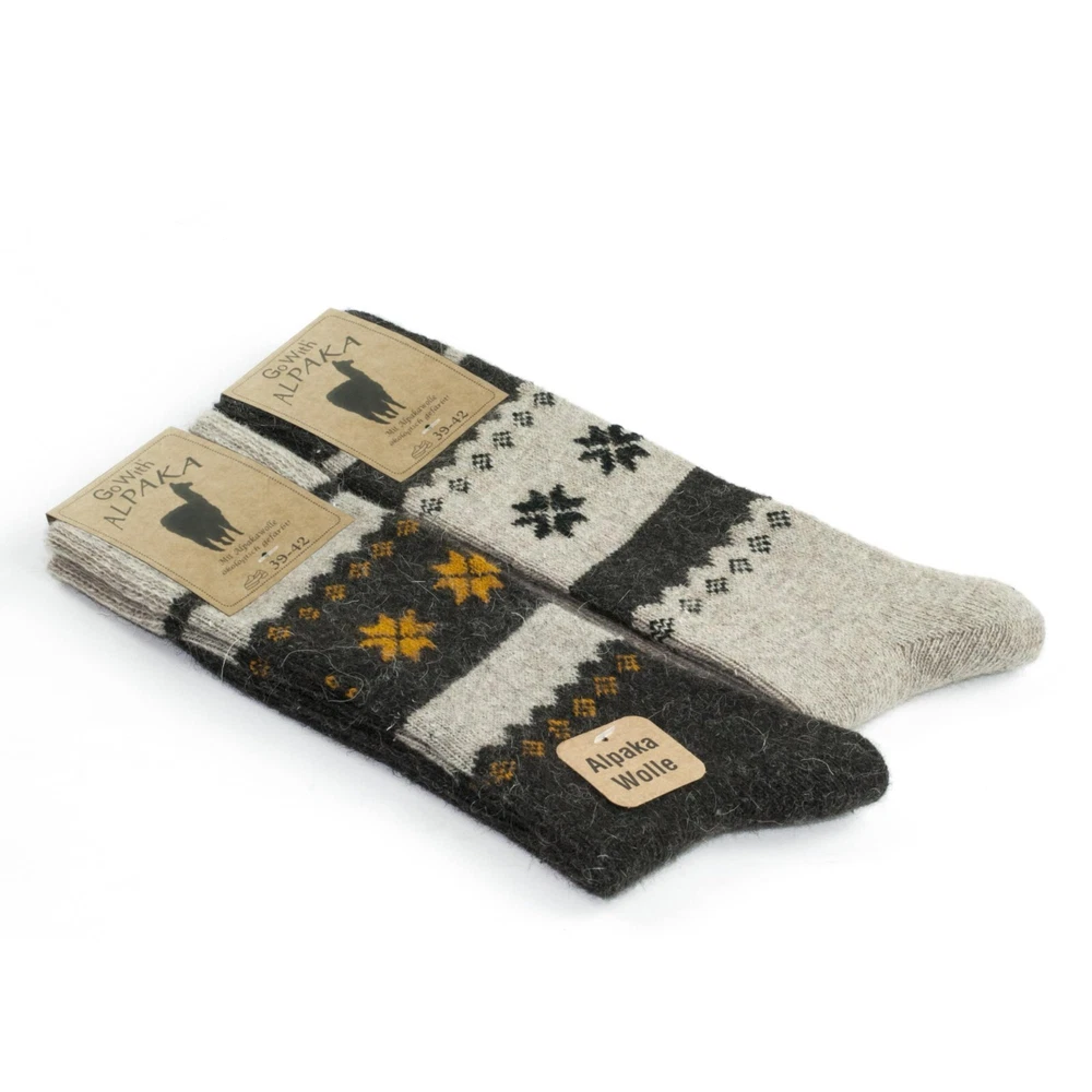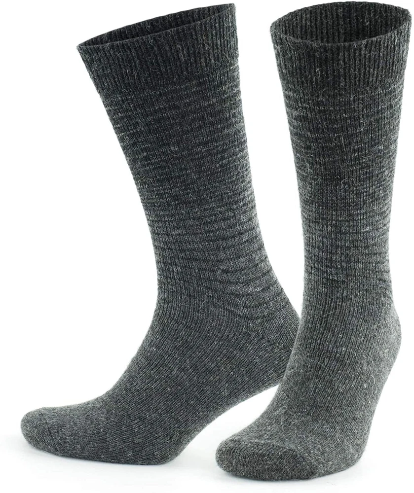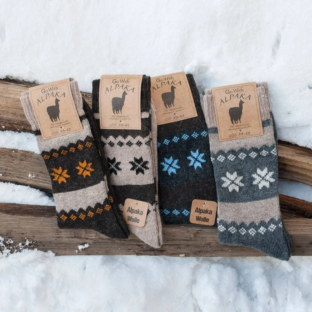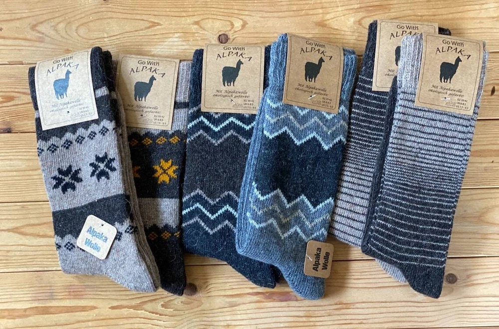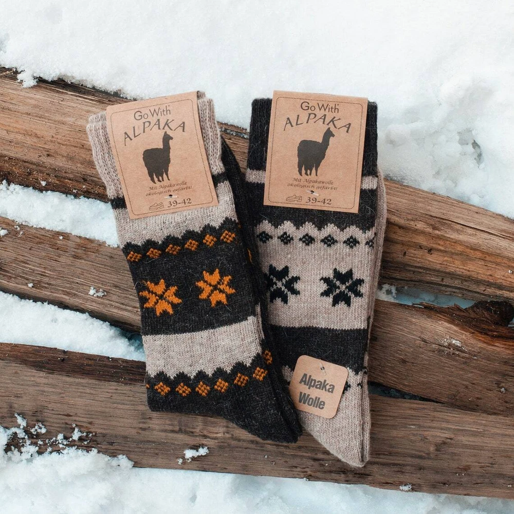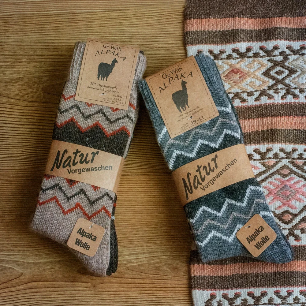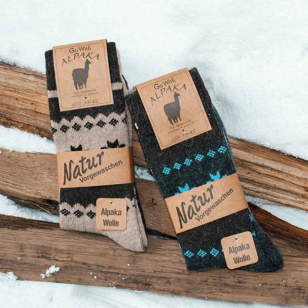 GoWith Original & True Alpaca Socks Premium Material: Alpaca camel wool is very durable thanks to its long fiber structure. Our winter alpaca socks for men and women for cold weather are made from non-itching hypoallergenic alpaca fibers. These Thick Knitted unisex wool crew socks are lightweight while still offering superior durability. Natural Moisture Wicking Socks. Our socks have Oeko-Tex® Standard 100 certification and has been tested for harmful substances and manufactured using sustainable processes under environmentally friendly and socially responsible working conditions and therefore %100 skin-friendly and allergy-free. Material(Imported): %40 Alpaca Wool %45 Sheep's Wool %12 Polyamide %3 Elastane Designed in Germany and made in Turkey. (we are often imitated but never duplicated) Available Sizes; US 5 - 8 (W) or (U) EU 35-38 US 7.5 - 9.5 (M) or (U) EU 39-42 US 10 - 12 (M) or (U) EU 43-46 NOTE FOR SIZE: (W) denotes the women and (M) for the men shoe size while (U) shows the unisex size.