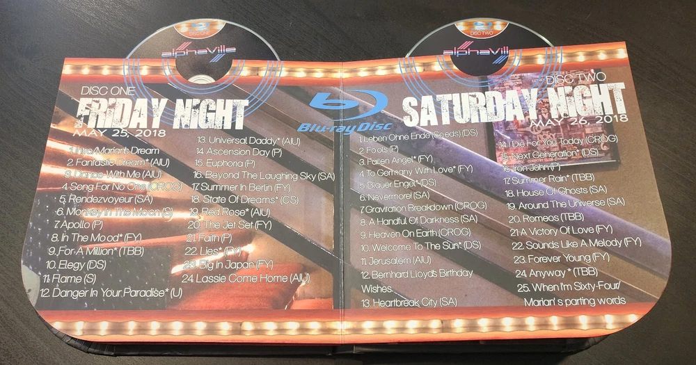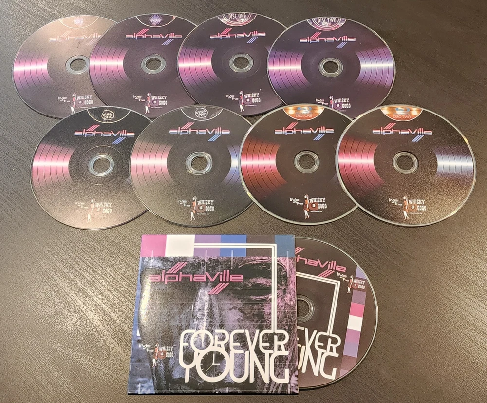 Alphaville – Live at the Whisky a Go Go WaGG This was a limited production of only 2,000 box sets. When they are gone, there will never be another produced. Recorded over 2 nights of a very special global live broadcast, this box set contains 4 audio CDs, 2 DVDs and 2 Blu-ray discs, and a special bonus CD of the entire album “Forever Young!” This box set includes the entire 4.5 hours of this 2 night concert. This is the first time the entire Forever Young album has ever been played live. Previously there were 4 songs that had never been performed live. Additionally there are another dozen songs that have only seen limited concert performances and are the only professional recordings of them. It also includes a 110 page book chronicling the entire week they spent with some of their dedicated fans from all corners of the world who came to participate in this very special event. It has been lauded as one of the best box set productions in existence. Truly a must have for any Alphaville fan and any collector of fine things. The artwork inside and out is unique and meant to capture the feelings of this most special week. This ships anywhere in the world from the United States. The Set List: Friday Night Fantastic Dream Dance With Me Song For No One Rendezvoyeur Monkey In The Moon Apollo In The Mood For A Million Elegy Flame Danger In Your Paradise Universal Daddy (The only time it has ever been performed live) Ascension Day Euphoria Beyond The Laughing Sky Summer In Berlin State Of Dreams Red Rose The Jet Set Faith Lies Big in Japan Lassie Come Home Saturday Night Leben Ohne Ende (Seeds) Fools Fallen Angel To Germany With Love Blauer Engel Nevermore! Gravitation Breakdown A Handful Of Darkness Heaven On Earth Welcome To The Sun Jerusalem Birthday wishes (Bernhard & Marian) Heartbreak City I Die For You Today Next Generation Iron John Summer Rain House of Ghosts Around the Universe Romeos A Victory Of Love Sounds Like A Melody Forever Young Anyway When I’m Sixty Four (Beatles) Marian’s parting words Alphaville – Live at the Whisky a Go Go Box Set! What You Will Find in Your Box: • May 25/26 concert nights in HD Blu-ray AND DVD; Taped live at the Whisky a Go Go in highest quality of sound and video! • Forever Young album – Live at the Whisky a Go Go! • Complete Audio tracks from both nights on CD • Total of 47 songs (view set list of each night) • Commemorative hardbound book – 100+ pages (all pictures taken by celebrity photographer Guido Karp). • Behind the scene clips and pictures. • Packaged in a very unique high quality box to commemorate this very special event. REVIEWS: One of the best box sets ever! The sound and visual quality is amazing. Even if you are the smallest of Alphaville fans, you will appreciate the live version. If you are a die hard like me, then you will be close to tears as I became, watching and listening to the live versions I could have only dreamed of hearing. I would say it’s the greatest box set since Dreamscapes. The book inside is really well done with an incredible amount of information from the band, the fans, the history of AV and the Whiskey a GoGo. Money very well spent. I could go on and on and on ... – RJS Brilliant product! Excellent setlist, rocking versions of most songs, great performances well thought through execution of the box set, included books and other gimmicks. Great layout and design with attention to details. The love that went into this product if clearly obvious! Immediate responses to any shipping related problems, very helpful and caring. Totally recommended, you will not be disappointed! – CL