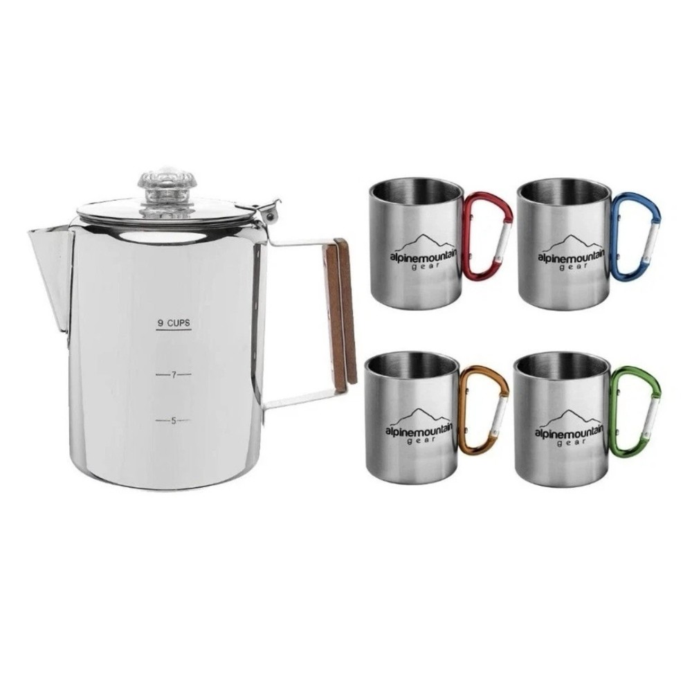 $ 7.39Alpine Mountain Gear 5-Piece Stainless Steel Coffee Set – 9-Cup Percolator & Mug