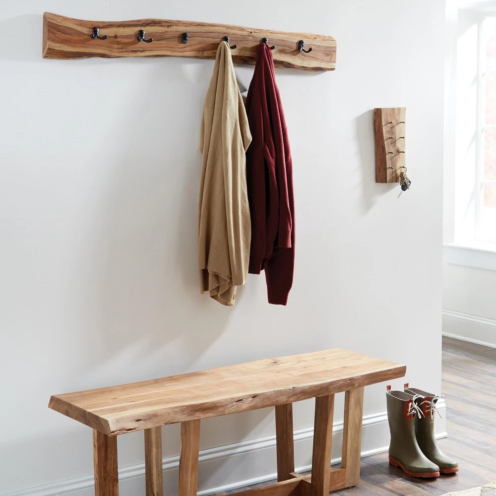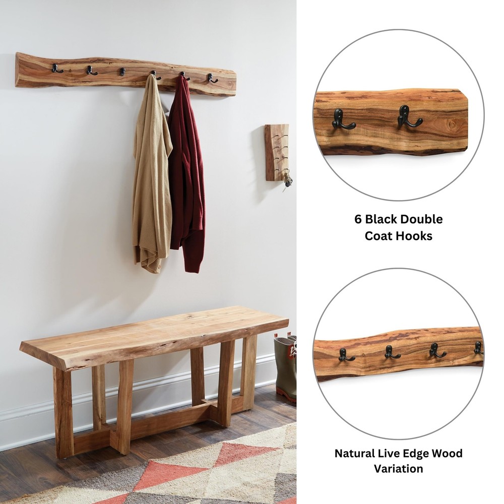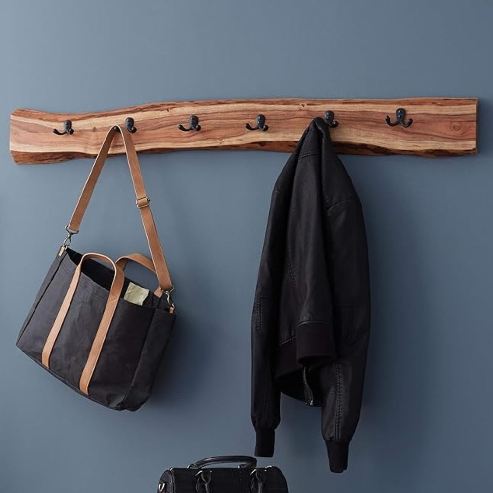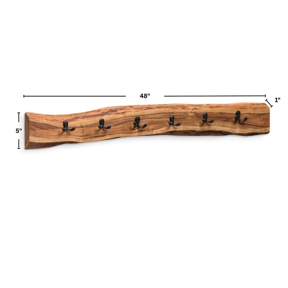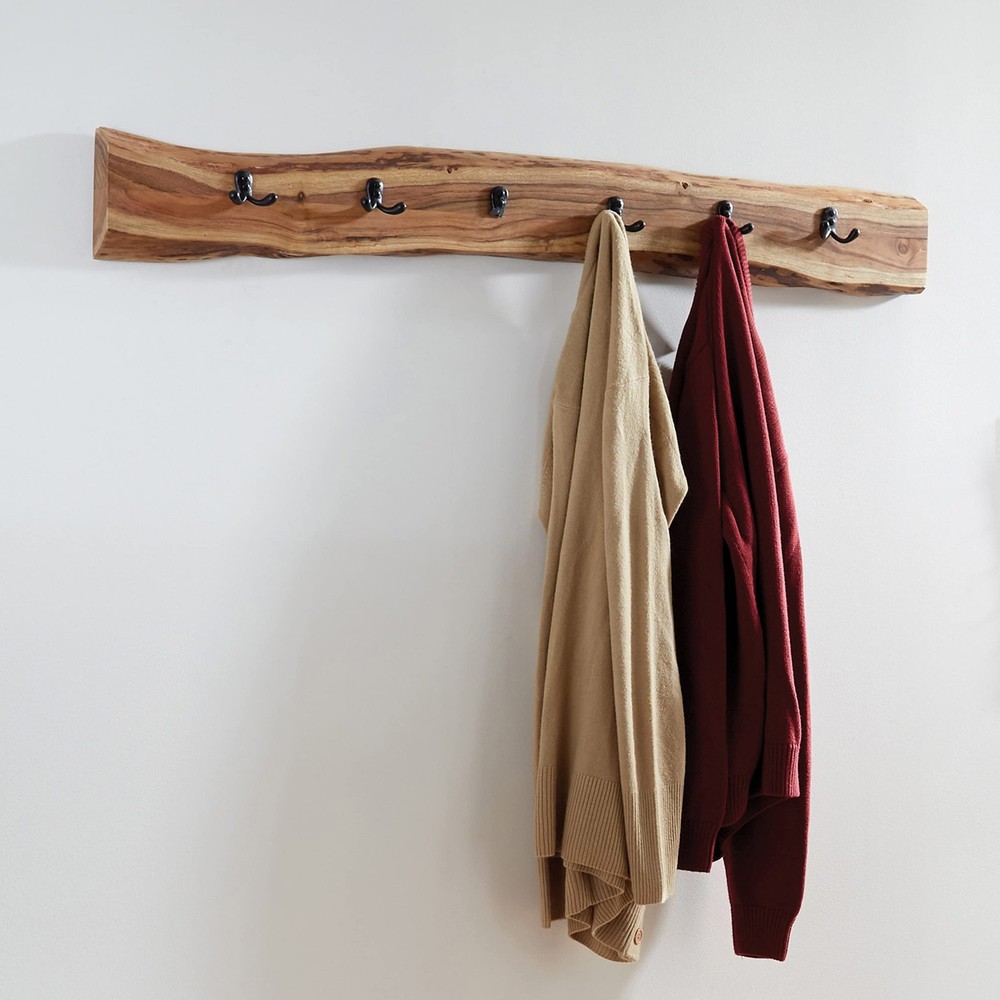 [STYLE] Showcase your home with a rustic yet modern feel with our live edge 48-inch coat hooks [DESIGN] Handcrafted from solid wood, this coat hook features a clear natural finish with black metal hooks creating a perfect statement piece for your entryway [STRENGTH] Hang your jackets, bags and other necessities securely with our metal flush bracket and key holder [CRAFTSMANSHIP] Expertly crafted from Alpine Natural Live Edge Wood, this 36" coat rack features four robust black metal hooks; each piece showcases unique characteristics, perfect for enhancing your entryway [UNIQUE STYLE] This live edge coat rack brings eco-friendly, modern design to your home, perfect for natural, rustic, industrial, or Scandinavian decor styles