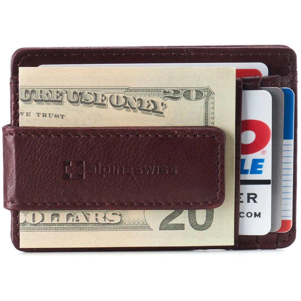 FAST & FREE SHIPPING 30 Day Returns Best Deals Guaranteed Alpine Swiss Mens RFID Safe Magnetic Money Clip Wallet Slim Front Pocket Wallet Harper RFID Magnet Money Clip Wallet By Alpine Swiss Product Features: 100% Genuine Leather ENHANCED MAGNETIC MONEY CLIP - Upgraded magnetic strength as of 2024 securely holds 6-10 folded bills with reliable grip. Crafted from genuine premium leather—not synthetic or bonded materials that often pose as real leather—breaks in beautifully over 2-3 weeks, softening for perfect card access while maintaining security. Compact 4 1/4"L x 3"W x 3/8"H" design eliminates back pocket bulk and discomfort. Perfect for professionals who value both style and functionality. SUPERIOR CARD ORGANIZATION - 8 strategically designed slots comfortably accommodate 6-10+ cards including ID window for quick license access. Starts snug for security, then molds to your cards for easy removal. Pro tips: Insert 2 cards in frequently used slots for 2 hours to speed break-in. Holds everything you need without the bulk of traditional wallets. Avoid Smooth Finish leather if you want a not so tight fit. PREMIUM FULL GRAIN LEATHER THAT IMPROVES WITH AGE - High-quality leather construction softens and personalizes to your carry style over time. Available in multiple finishes including Smooth, Pebble Grain, Nubuck, and Glossy Nappa with signature Alpine Swiss styling. Reinforced stitching and quality materials ensure years of reliable daily use and professional appearance. GIFT BOXED & FRONT POCKET OPTIMIZED - Arrives in elegant Alpine Swiss gift box, perfect for Father's Day, birthdays, or professional gifts. Designed for comfortable front pocket carry - enhanced security against pickpockets while eliminating sitting discomfort. Ideal for business professionals, travelers, and anyone seeking organized minimalism. ADVANCED RFID BLOCKING PROTECTION - Proven RFID technology shields your credit cards and personal information from electronic theft and unauthorized scanning. Compact design fits comfortably in front pockets without printing through clothing. Perfect balance of security, organization, and convenience for modern professionals and frequent travelers. Now Offering FREE SHIPPING and 30 Day RETURNS on all our Items. Thanks for Shopping with Artofdeals.