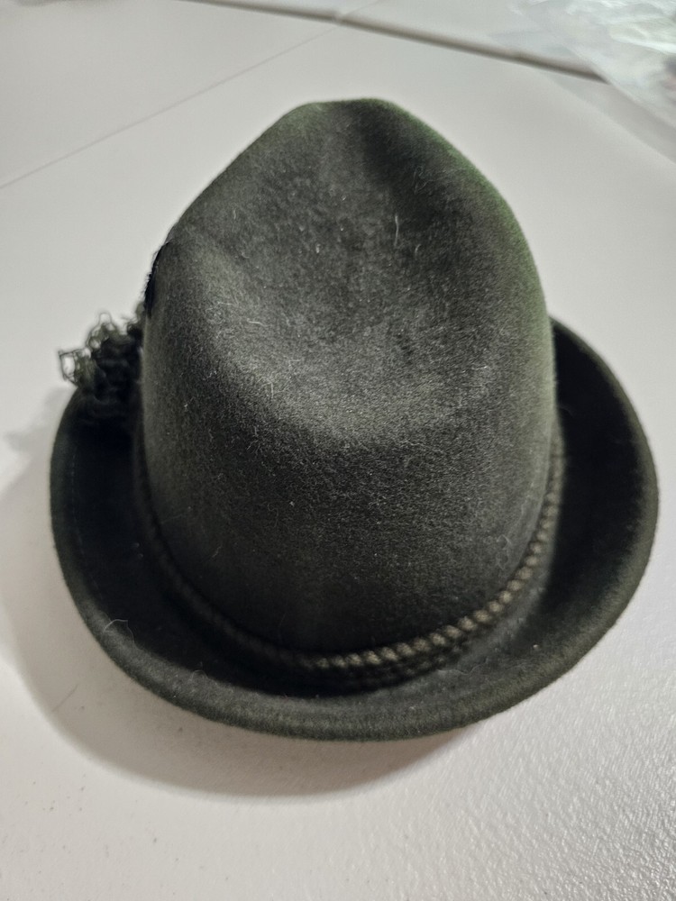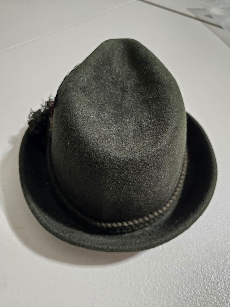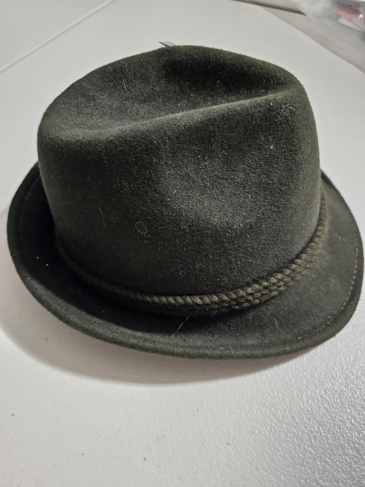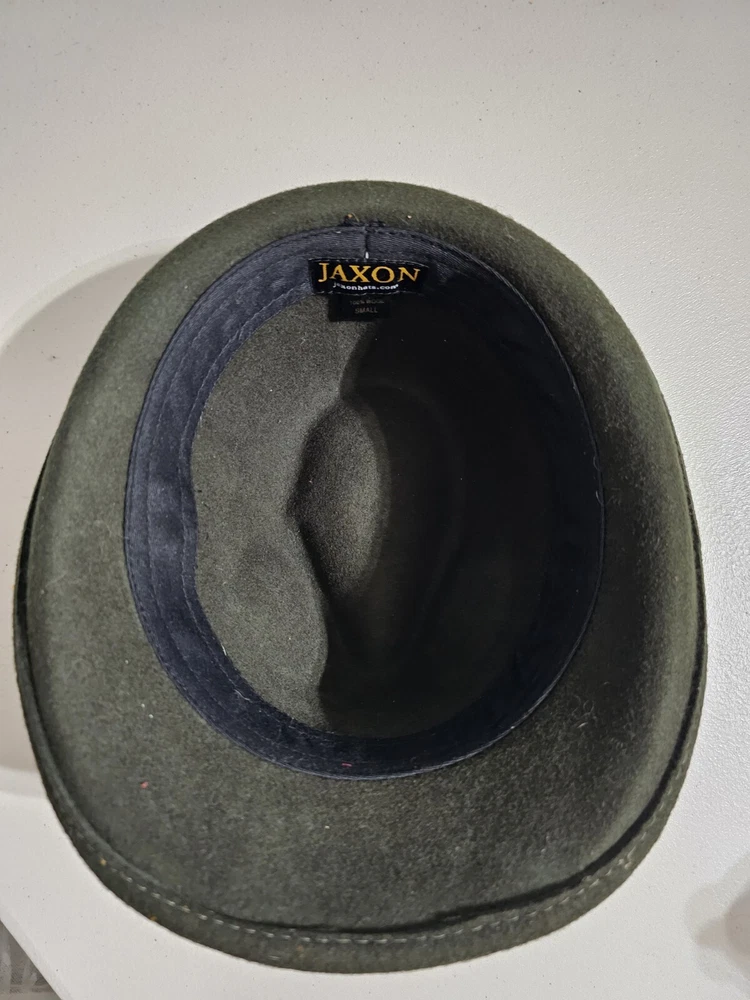 Wool felt hat by Jaxon in a size small that measures 21". This is in very good pre-owned condition. My camera magnifies every minute piece of lint, so this is nicer looking in person than what my camera might show. The hat is a dark green. Returns accepted within 30 days in same condition as purchased. Buyer pays return shipping. Shipping USPS ground.