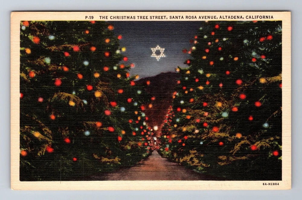 Altadena CA-California, The Christmas Tree Street At Night, Vintage Postcard