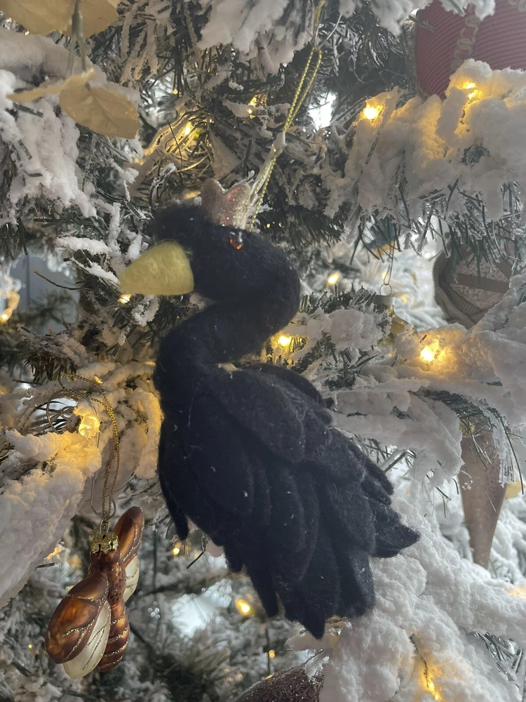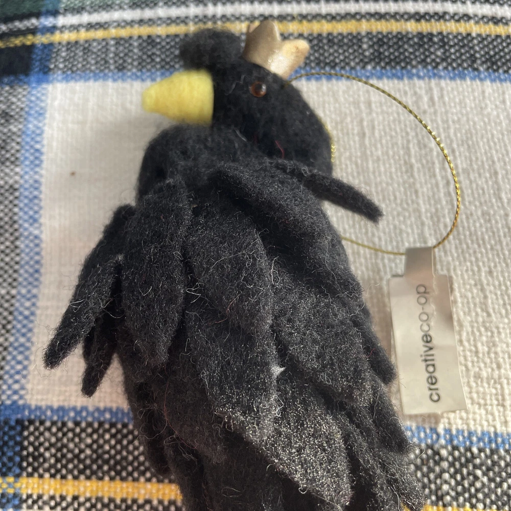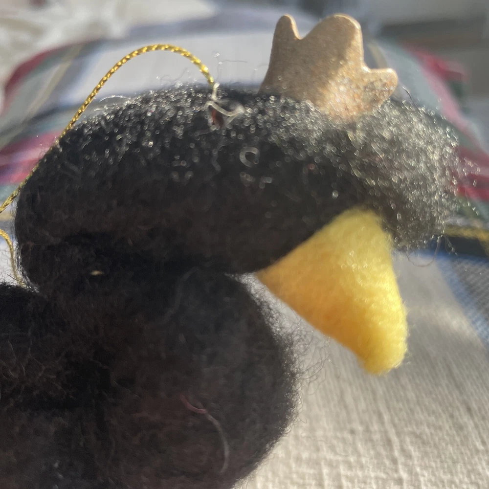 The Altar'd State Black Swan Ornament is a stylish and elegant glass ornament featuring a black swan design perfect for a Christmas tree. The ornament is adorned with felted wool accents, adding a unique and tactile element to its design. Part of the Ornaments collection, this piece adds a touch of sophistication to any holiday decor with its ornate black color and animal theme. Ideal for those who appreciate detailed and ornamental pieces, this ornament is a standout addition to any festive display.