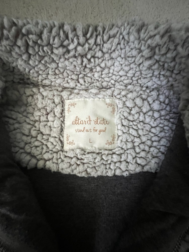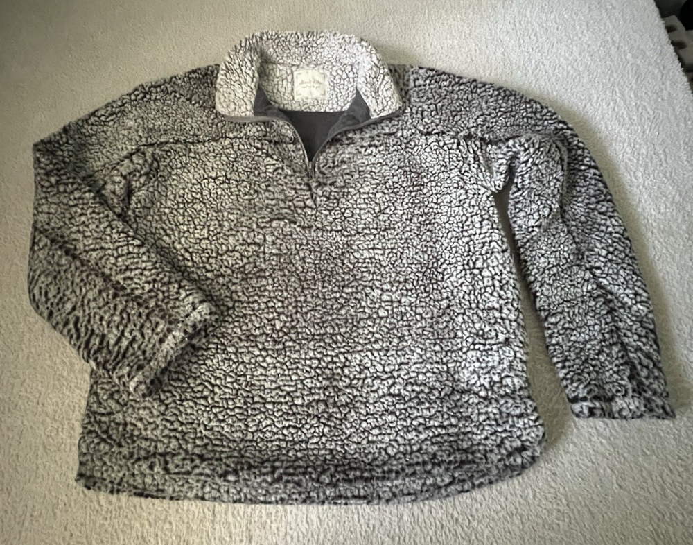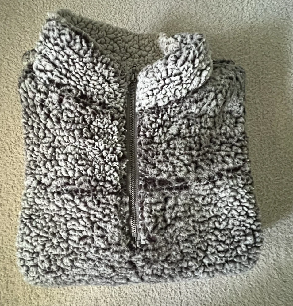 The Altar’d State Women’s Sherpa Wubby Gray 1/4 Zip Soft Sweatshirt Pullover in Size L is a stylish and cozy addition to any woman's wardrobe. This pullover with sweatshirt lining features a solid gray color with a high neckline and long sleeves, perfect for activewear in the winter, fall, or spring. The fleece lining material and relaxed fit make it a comfortable and versatile piece for outdoor activities or casual everyday wear. The 1/4 zip closure adds a touch of convenience, while the brand's unique accent of a zipper detail adds a preppy and classic touch to the overall design. Thank you for your consideraton of this great fleece.