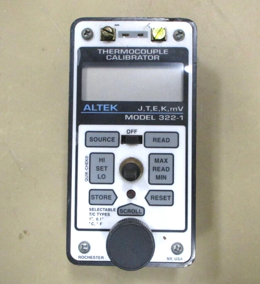 Altek Model 322-1 Thermocouple Calibrator Used Altek Thermocouple Calibrator J-T-E-K-mV Model 322-1 Powers Up - Goes Through Functions Face Screw in Holes are Cracked No Battery Requires One (1) 9-Volt Battery Check out my other items - opens in a new window or tab ! Shipping Item is located in Howell Michigan, great pick-up item. For shipping please use the UPS calculator. Buyer pays all shipping expenses. Thank you Return Policy Within 30 days after receiving this item and if you believe that I misrepresented it, please email me to set up a return. All return postage or freight will be paid by the buyer and it must be returned in the same condition that it was shipped. Thank You Liability Seller makes no claims as to the equipment's compliance to Starlight Supply Inc and/or Industrial Supply Unlimited LLC, or any other safety standard, and is held harmless regarding any cost resulting from non-compliance. The seller and its agents are to be held harmless for any personal injury or property damage resulting from the handling or use of this equipment or items. It is the buyer's responsibility to inspect or otherwise verify safety standards relating to this equipment. It is the buyer's responsibility as to the safe handling and operation of this equipment or items. Be sure to add me to your favorites list !