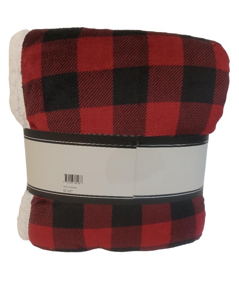 Altitude Home Velvet Throw To Sherpa 50 x 70 Red Black White Check Print Soft