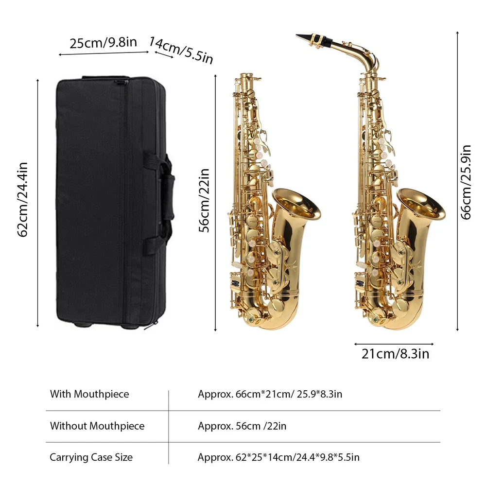 Color: Gold Brand: Unbranded/Generic Type: Alto Set Includes: Mouthpiece, Strap, Case Body Finish: Gold Lacquer Skill Level: Beginner Body Material: Brass Experience Level: Beginner gtin13: Does not Apply ASIN: B0BX8RS6R7 Key: Eb MPN: Does not Apply UPC: Does not Apply Key Type: 802 Instrument: Saxophone Features: Engraved Pattern, Rust-Protection, Accurate Sound Hole Positions