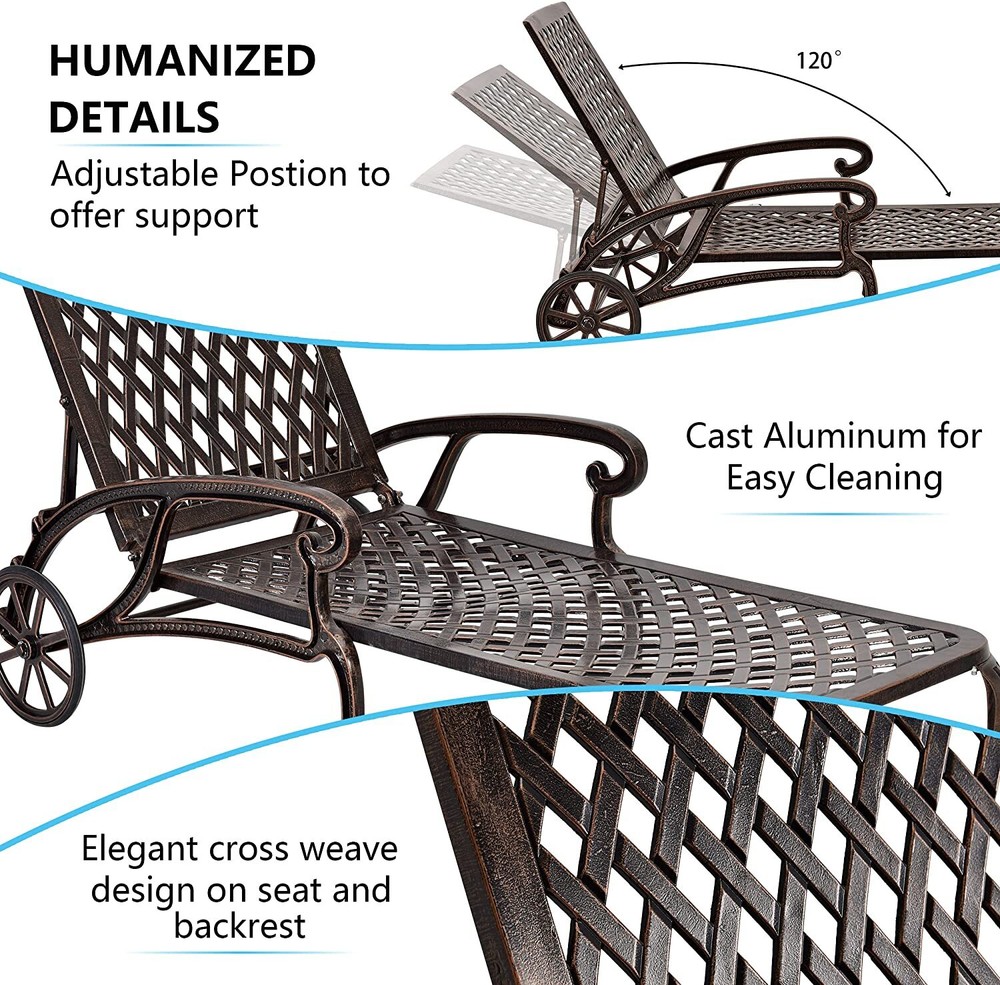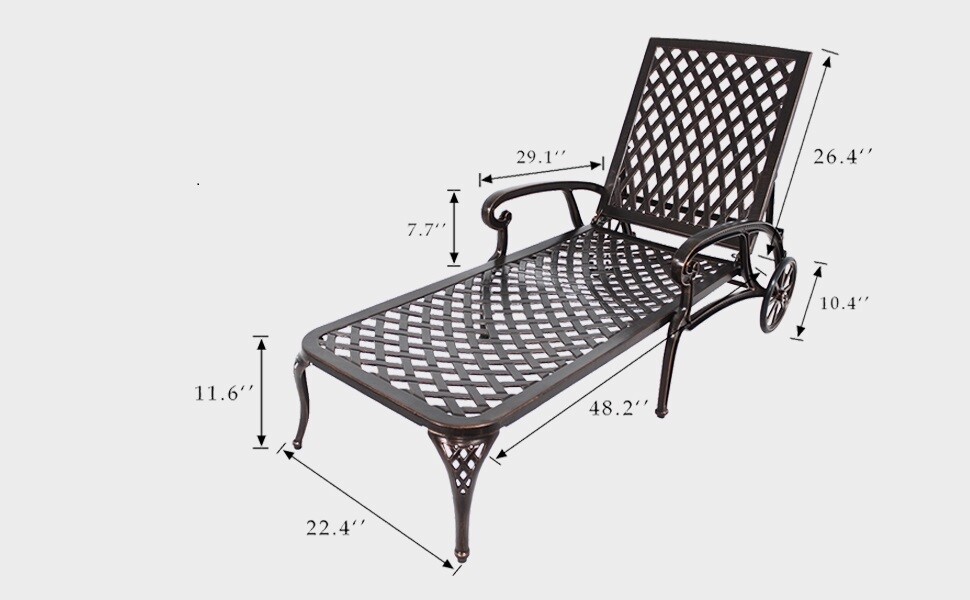 Durable Material Rust-resistant and waterproof bronze finish coating that years to enjoy without corrosion damage Adjustable Backrest 5 adjustable position can meet the needs of various postures during your leisure time Rolling Wheels The two back wheels make this outdoor furniture easy to move around outdoors like your backyard, patio, poolside. Adjustable foot pads fit for uneven ground Cross Weave Solid cross weave construction hollowed out with elegant and graceful hardened antique bronze powder coating in details for all-weather Adjustable Reclining Rust-Resistant Aluminum Cast Poolside Chaise Lounge Furniture Color Bronze Product Dimensions 24'' W x 45'' D x 36'' H Special Feature Wheel Recommended Uses For P... NANHG8osa Your best online business partner Aluminium Cast lounge chair 1pcs brown Durable Material Rust-resistant and waterproof bronze finish coating that years to enjoy without corrosion damage Adjustable Backrest 5 adjustable position can meet the needs of various postures during your leisure time Rolling Wheels The two back wheels make this outdoor furniture easy to move around outdoors like your backyard, patio, poolside. Adjustable foot pads fit for uneven ground Cross Weave Solid cross weave construction hollowed out with elegant and graceful hardened antique bronze powder coating in details for all-weather Adjustable Reclining Rust-Resistant Aluminum Cast Poolside Chaise Lounge Furniture Color Bronze Product Dimensions 24'' W x 45'' D x 36'' H Special Feature Wheel Recommended Uses For Product outdoor , including garden, yard, pool Frame Material Alumimium Fabric 200g polyester Unit Count 1 Count Maximum Weight Recommendation 300Pounds Carton size 1set: 51.57'' W x 25.59'' D x 10.24'' H Item Weight 57.32 Pounds Country of Origin China Reclining Function: three backrest tilting positions to select, 120° for reading, 150°for relaxing and 180° for napping Reliable Design: sturdy structure for better durability and weight capacity; wheels for improved mobility; wide-leg stance with adjustable foot pads Weather Proof: easy to care for with protective coating, UV and rust resistance; years to enjoy without corrosion damage Elegant Choice: cross weave design; cast aluminium frame with zero air pollution coating, odor-free.Assembly is required Item Specifics Brand Unbranded Type Patio & Garden Furniture Sets Material Aluminium Payment If you do not have a PayPal account, to get started and buy your first item with us is very easy. Simply click on the 'Buy It Now' button and follow the eBay checkout steps. Select PayPal as the payment method you then will be given the chance to enter your card details in to PayPal's secure checkout in order to pay for your order. Shipping We will deliver the goods within 1-2 days after receiving the order We use a variety of transportation methods to ensure the fastest delivery of products Returns If an unit is received defective, of course we take it back or replace it. If the unit is received as expected, we must charge for our expenses if you want to send it back. We have to charge for the work of handling, retesting and restocking. Contact Us Dear buyer, Thank you for visiting my store! Our warehouses are located in many regions around the United States. According to the customer's delivery address. Use USPS/UPS/DHL logistics transportation service. Prioritize the best quality logistics solutions to transport packages. Ensure package delivery time, At the same time. Have any after-sales problems, Feel free to contact us. At your service NANHG8osa Your best online business partner DESCRIPTION PAYMENT SHIPPING RETURN POLICY CONTACT US Aluminium Cast lounge chair 1pcs brown Durable Material Rust-resistant and waterproof bronze finish coating that years to enjoy without corrosion damage Adjustable Backrest 5 adjustable position can meet the needs of various postures during your leisure time Rolling Wheels The two back wheels make this outdoor furniture easy to move around outdoors like your backyard, patio, poolside. Adjustable foot pads fit for uneven ground Cross Weave Solid cross weave construction hollowed out with elegant and graceful hardened antique bronze powder coating in details for all-weather Adjustable Reclining Rust-Resistant Aluminum Cast Poolside Chaise Lounge Furniture Color Bronze Product Dimensions 24'' W x 45'' D x 36'' H Special Feature Wheel Recommended Uses For Product outdoor , including garden, yard, pool Frame Material Alumimium Fabric 200g polyester Unit Count 1 Count Maximum Weight Recommendation 300Pounds Carton size 1set: 51.57'' W x 25.59'' D x 10.24'' H Item Weight 57.32 Pounds Country of Origin China Reclining Function: three backrest tilting positions to select, 120° for reading, 150°for relaxing and 180° for napping Reliable Design: sturdy structure for better durability and weight capacity; wheels for improved mobility; wide-leg stance with adjustable foot pads Weather Proof: easy to care for with protective coating, UV and rust resistance; years to enjoy without corrosion damage Elegant Choice: cross weave design; cast aluminium frame with zero air pollution coating, odor-free.Assembly is required Item Specifics Brand : Unbranded Type : Patio & Garden Furniture Sets Material : Aluminium Payment If you do not have a PayPal account, to get started and buy your first item with us is very easy. Simply click on the 'Buy It Now' button and follow the eBay checkout steps. Select PayPal as the payment method you then will be given the chance to enter your card details in to PayPal's secure checkout in order to pay for your order. Shipping We will deliver the goods within 1-2 days after receiving the order We use a variety of transportation methods to ensure the fastest delivery of products Returns If an unit is received defective, of course we take it back or replace it. If the unit is received as expected, we must charge for our expenses if you want to send it back. We have to charge for the work of handl