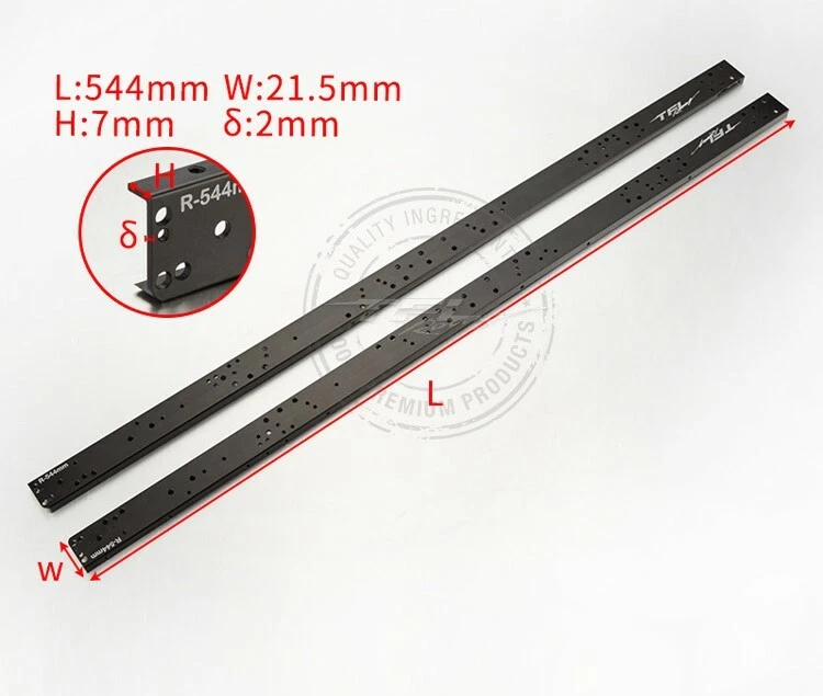 TFL Metal Chassis Rail Set for 1/14 Tamiya Trailer Tractor Truck RC Model Car Specification: Material: Aluminium Alloy Technology: CNC, Anodicoxidatio L:544mm,W:21.5mm,H:7mm,δ :2mm Suitable For: 1/14 Tamiya Trailer Tractor Truck RC Model The package includes: Only 1pair Metal Chassis Rail Set