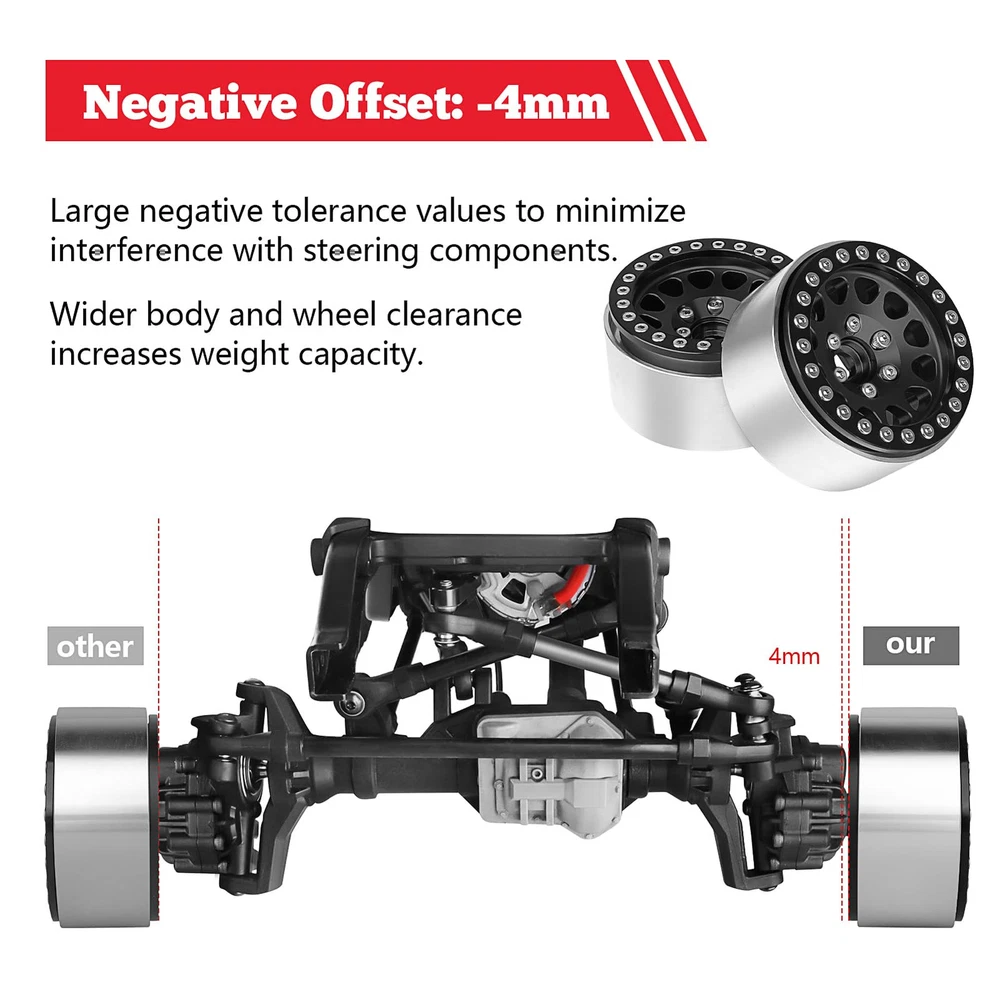 Note:The color of the item may vary slightly due to photography and your own computer /Please allow some little manual measurement error. Customer Satisfaction If you are not completely satisfied with our products, please do not hesitate to us to request a or exchange! Note:Check your specific model's manual for compatibility,or us. ✔High-Quality Materials: These 1.9 beadlock wheels are constructed from durable aluminum, ensuring excellent performance and longevity for your RC crawler adventures. ✔Universal Compatibility: Designed to fit 1/10 scale RC crawlers, these wheels are with Traxxas TRX4, Axial SCX10, Redcat Gen 8, and RC4WD popular models, offering versatility for various vehicles. ✔Beadlock Design: The beadlock rings can securely hold the tires in place, preventing them from coming off during intense off-road driving, for tackling challenging terrains, giving you added peace of mind during rough terrains. ✔Stylish Appearance: With their sleek design, these wheels not only deliver great functionality but also add a touch of flair to your RC crawler's overall appearance. ✔4-Pack