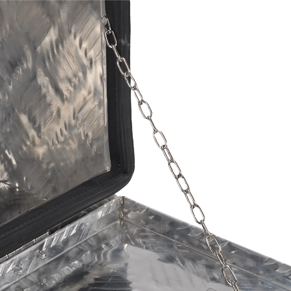 Description: · 100% Brand new,never been used · 24"(L) x 17"(W) x 18"(H) Overall Size · 5 Bar Tread Pattern Strengthens the Aluminum for Maximum Durability · Box Conveniently Mounts in Vehicles Truck Bed for Space Saving Storage · Over-Hanging Lip Resists Water from Getting Inside, Providing Ease of Mind in any Weather Condition · Fold up Door Provides Full Access to the Box · Built-in Lock Ensures all Items are kept Safe and Secure · Perfect for storing your Tools in your Vehicle or at Home · No instruction included Sp ecifications: · Material: Aluminum · Product Dimensions: (24 x 17 x 18)(L x W x H) · Tread: 5 Bar Tread · Weight: 17lbs / 8kg · Position: Truck Bed, Underbody · Color: Silver Package Includes: · 1 x Aluminum Tool Box · 2 x Keys · As the picture show Fitment: Universal This toolbox is versatile and can be used in trucks, RVs, ATVs, trailers, garages, job sites, flatbeds, camper hook racks, luggage racks, pickup trucks, or dump trucks. Shpping: Recommendations to International Buyers: Import duties, taxes and charges are not included in the item price or shipping charges,they are responsible by buyers. All orders with its payment cleared will be shipped within 2 work days.please advise your phisical address and phone NO.. Shipping carriers will be different depends on special needs,if you have special request,please contact us. Tracking numbers will be updated on eBay as soon as they are created and processed All order will shipped out from our USA warehouse for USA buyer. Delivery time is 3-10 Business days. No shipping on weekends and holidays. Return: Please contact us before return your item,we will send you correct return address. All returns must be packed securely for shipping and the tracking number must be provided via your eBay return request or message. Any lost or damage during shipping back are covered by buyer. Contact US: Please take photos immediately if you find the package or item damaged. The best way to contact us is by eBay messages. We always reply eBay messages that are sent to us with an inquiry, usually within 24 hours of receipt or sooner. Although we are trying our best , there could be small issues like wrong or defective item sent or damaged during transit or item not as described. Please do not hesitate to contact us and we will work with you for a reasonable solution.