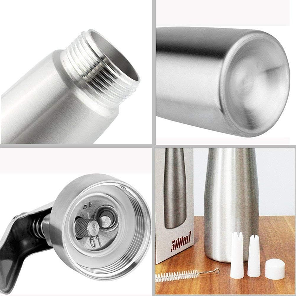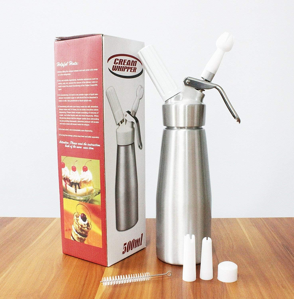 Store New Arrivals Add to Favorite View Feedback Contact Manual Whipped Cream Dispenser Aluminum 500ML/1 Pint Cream Whipper Fancy Desserts Maker Homemade Gourmet Whip Culinary- Compatible 8-Gram Whip Cream Chargers (Not Included) Description Style Aluminum Cream whipper Head Material Aluminium Color Aluminum-sliver Is Dishwasher Safe Yes Item Weight 1.7 pounds Is Discontinued By Manufacturer No Product Dimensions 3.54"L x 3.54"W Multi-use and Practical Occasions--Amazed your family,friends or customers with stinfully a delicious mousses,toppings and treats in a flash with our cream whipper.Home cooks and professional chefs can top off ice cream sundaes or make rich chocolate and savory mousses, coconut whipped cream, soups, sauces, foams, frothed lattes, and nitro coffee. High-quality Construction--Feels like it's restaurant quality instead of consumer grade.The cartridge holder is sturdy.Aluminum food grade material body and head are durable and light weight and developed with safety in mind.with 3 Decorating Plastic Nozzles, whipped cream chargers Holder cartridges(we send nozzles' cleaning brush) Easy to assemble Easy To Operate Easy To Clean--Cream whipper nozzle with the included scrub brush Use for home kitchen,party,or cooking class as gifts. You can clean whipper easily. More Health--You can get most fresh cream by your hand with Sivaphe whippped cream dispenser at any time. And you can control the calories to be healthy. Instructions for use step by step]: Ensure the safety. The pamphlet in the box gives the notes tips and pls read the instructions for use. 500 ml whipped cream dispenser compatible with all brands of 8-gram cartridges. Product Description Do you spent time and money for delicious dessert with ice cream? Do you also trouble how to make delicious homemade chocolate mousse pie with whipped cream? Now it is time to change! Simply, you just need one Sivaphe whipped cream dispenser! More Health: You can get most fresh food by your hand with this cream whipper at any time. And you can control the calories to be healthy. FRIENDLY NOTE: Gifted 3 whipped cream decoration notes , more convenience, more choose, more fantistic Compatible with standard 7.5-8gram N2O cartridge (not included), Do not use CO2 cartridges with whipped cream as it will make the cream mix sour Supply for : Ice cream /Fruit cream Beautiful Desserts Vanilla Yogurt cream Yummy coffee drinks Milk shakes And Other your favorite foods ! ABOUT OUR SIVAPHE Better drinking ware, better life! Our Sivaphe supply: French Press Expresso moka pot Ice Cold Coffee Maker Whip Cream Dispenser Glass Tumblers & Mug Stainless steel Tumblers & Mugs Water Bottles Whipped Cream Dispenser instructions are easy to follow, help you create great whip cream in just minutes. How to use: Put more than 30% fat content cream. Don't more than Max line capacity Screw on whipper head tightly Place N2Ocharger into charger holder Screw the charger holder until the charger content is released with a hissing sound Shake whipper briskly about 10 times or more Make cream onto cake or coffee as you like Use CO2 cartridges ONLY when using the dispenser as a soda siphon for carbonating beverages or acidic sauces, but NOT with cream. Best gifts for the homemade lover. Brewing method for Dessert shop and Fancy drinking shop. MATERIAL QUALITY DURABILITY, DECORATION TIPS GIFTED Easy to Assemble Wide mouth Easy to Add Aluminum Quality and Durability Body WHIP CREAM DISPENSER PARTS Packed with 1-Pint Aluminum Dispenser / 3 Plastic Decorating Tips / Cleaning Brush / N2O Cartridge / N2O Valve Cover WHIP CREAM DECORATION TIPS Three decorative tips included to make your creations extra impressive. Spare N2O charger holder and silicone gasket included. WHIP CREAM SIPHION Give you a variety of options for decorating your pies, cakes, and waffles; Your homemade desserts and savory dishes will look as beautiful as they taste. ABOUT US We offer the best prices around on high quality products. Our E-store includes media such as books, movies, music and games while offering electronics, toys, sporting apparel, clothing, tools, general home, garden items and more. SHIPPING We are always working hard to ensure your package arrives as soon as possible. Please understand that some factors like weather, high postal traffic, and the performance of shipping companies are outside of our control. We offer free shipping to the lower 48 states and ship within 2 business days of payment, usually sooner. We do not accept P.O. Boxes. Please provide a physical address. For shipping outside of the continental USA, we only use eBay's Global Shipping Program.The item is shipped to KY and then sent to the rest of the world. International customers are responsible for all duties and taxes. Continue to check out in order to calculate costs for shipping the item to your country. Messages regarding eBay's Global Shipping Program MUST be directed at eBay EXCLUSIVELY. RETURNS We offer a 30-Day Return Policy on items which you are not completely satisfied with. You have the option for a full-refund or an exchange of the item. No returns are available on items shipped outside of the USA. PAYMENT We accept PayPal. CONTACT US This page content is yet to come Please ad us to your favorite seller and visit again later Thank You CUSTOMER SATISFACTION We try our very best to make sure every customer is completely satisfied. If there's a problem, message us! We're happy to help. WE ACCEPT Copyright © 2021 AutoDS. | All Rights Reserved