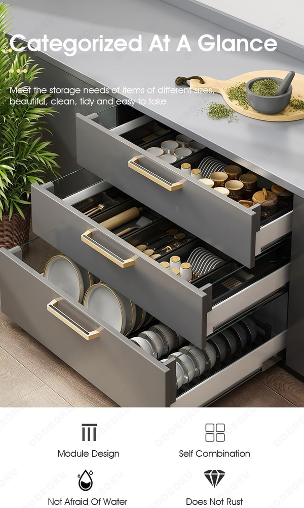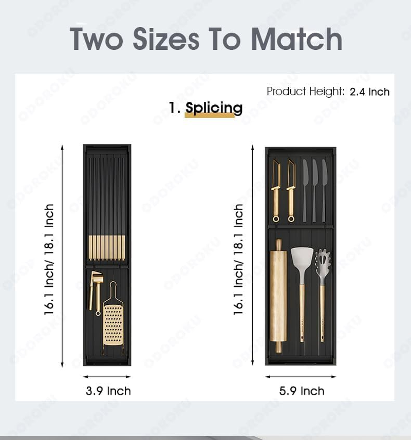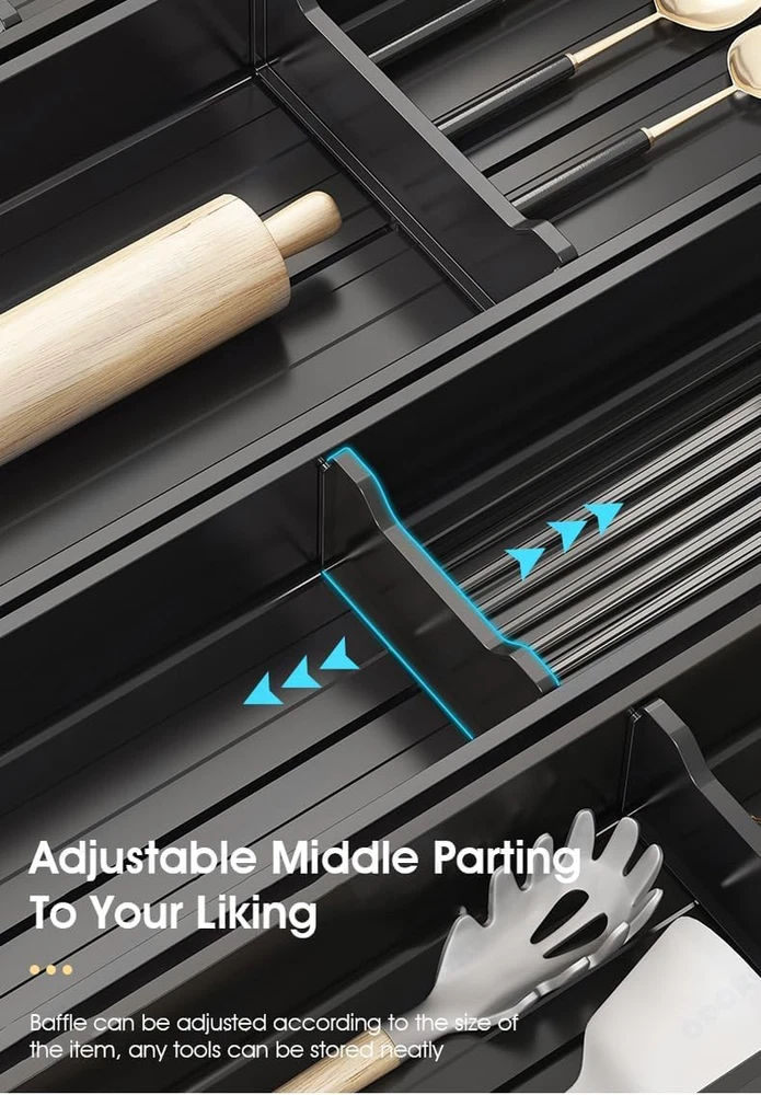 Store New Arrivals Add to Favorite View Feedback Contact Aluminum Adjustable Cutlery Drawer Organizer Flatware Utensil Drawer Tray for Silverware Serving Utensils Storage for Kitchen, Office, Bathroom Supplies (16.1 Inch X 5.9 Inch) Description Item model number ODCTDO001 Unit Count 1.0 Count Batteries Required? No Number of Items 1 Part Number ODCTDO001 Color 16.1 Inch x 5.9 Inch Product Dimensions 16.1"D x 5.9"W x 2.4"H Material Aluminum Country of Origin China Mounting Type Tabletop Mount Number of Compartments 2 Item Weight 10.6 ounces Shape Rectangular Batteries Included? No Special Features Compact Special Feature Compact Specific Uses For Product Utensils Included Components 1 x Drawer Organizer Keep your cutlery, silverware, serving utensils and kitchen gadgets neatly organized with the adjutable flatware drawer organizer Adjustable Compartments: Adjust the compartment indivisually to fit different items. fits easily in most kitchen drawers. With 18 inch and 16 inch in length and 3.9 inch and 5.9 inch in width Efficient & Versatile Stoeage: The organizer for drawer categorizes and neatly stores utensils, making it easy to pick up what you need. Not only for kitchen utensils, it can also be used in drawers in other rooms to store various small items. Ideal sized with multiple compartments to fit various sized items like pencils, pens, paper clips, crafting materials, tech/gadget accessories, toiletries, beauty products, grooming tools, and more Multifunctional Drawer Organizers - Not only can be used to store silverware, chopsticks, wine openers and other cooking tools, but also can be used to store other items, such as pencils, pens, Paper clips, small tool accessories, etc this utensil organizer offers ample space for storing most cooking utensils in the kitchen, such as spatulas, ladles, tongs, utensil sets, and whisks. Anti Rust & Easy to Clean: Product is made if anti rust aluminium material. Cleanups a breeze with our drawer organizers and storage inserts. Just use the faucet to wash the flatware tray, and wipe it down of any stains or crumbs that might have accumulated. Product Description Aluminum Kitchen Utensils Holder Organizer Experience organization at its finest with the ODOROKU Aluminum Adjustable Cutlery Drawer Organizer. Designed to seamlessly blend functionality and style, this organizer ensures that your kitchen and office essentials are always within reach and perfectly arranged. Our Key Advantages Premium Aluminum Material Crafted from high-quality aluminum, this organizer not only looks sophisticated but promises durability and longevity. It's resistant to rust, ensuring it remains pristine and functional for years to come. Versatile Organization Perfect for keeping your cutlery, silverware, serving utensils, and various kitchen gadgets systematically sorted. Fully Adjustable Compartments Customize each compartment to your storage needs. It adjusts effortlessly to fit the width of your drawer, offering an instant tailored fit. Low Maintenance Cleaning this organizer is a cinch. Just rinse it under the faucet and wipe away any spills or crumbs. Made from durable aluminum, it promises both strength and ease of care. Elegant Design: Crafted with precision, its sleek aluminum finish offers a touch of modern luxury to any drawer. Dimensions Extending from 410mm to 460mm in length, 100mm to 150mm in width, and standing 60mm tall, it's designed to fit most standard drawers. ABOUT US We offer the best prices around on high quality products. Our E-store includes media such as books, movies, music and games while offering electronics, toys, sporting apparel, clothing, tools, general home, garden items and more. SHIPPING We are always working hard to ensure your package arrives as soon as possible. Please understand that some factors like weather, high postal traffic, and the performance of shipping companies are outside of our control. We offer free shipping to the lower 48 states and ship within 2 business days of payment, usually sooner. We do not accept P.O. Boxes. Please provide a physical address. For shipping outside of the continental USA, we only use eBay's Global Shipping Program.The item is shipped to KY and then sent to the rest of the world. International customers are responsible for all duties and taxes. Continue to check out in order to calculate costs for shipping the item to your country. Messages regarding eBay's Global Shipping Program MUST be directed at eBay EXCLUSIVELY. RETURNS We offer a 30-Day Return Policy on items which you are not completely satisfied with. You have the option for a full-refund or an exchange of the item. No returns are available on items shipped outside of the USA. PAYMENT We accept PayPal. CONTACT US This page content is yet to come Please ad us to your favorite seller and visit again later Thank You CUSTOMER SATISFACTION We try our very best to make sure every customer is completely satisfied. If there's a problem, message us! We're happy to help. WE ACCEPT Copyright © 2021 AutoDS. | All Rights Reserved