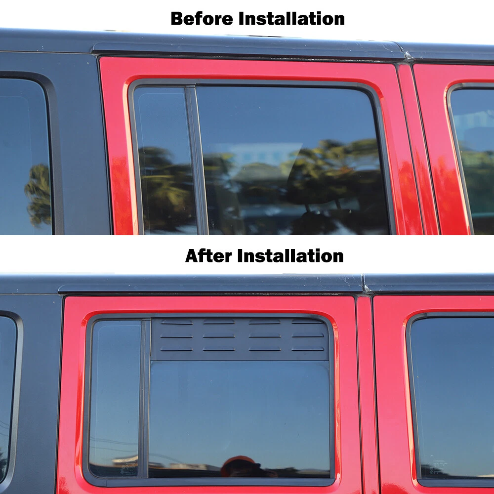 Package include: 2x Rear Side Window Blinds Quarter Louver Vent Cover Manufacturer Part Number: Chero20241022US04QA Fitment Type: Direct Replacement UPC: Does not apply OE/OEM Part Number: Chero20241022US04QA12 Finish: Painted Type: Body Side Brand: CheroCar Material: Aluminum alloy Placement on Vehicle: Left, Right Fitment: For Jeep Wrangler JK 2007-2017 Brand Type: Aftermarket Branded gtin13: Does not apply Color: Black Manufacturer Warranty: 1 Year Attachment Type: Self-Adhesive Features: Durable, Easy Clean, Easy Installation, Scratch-Resistant, Self-Adhesive
