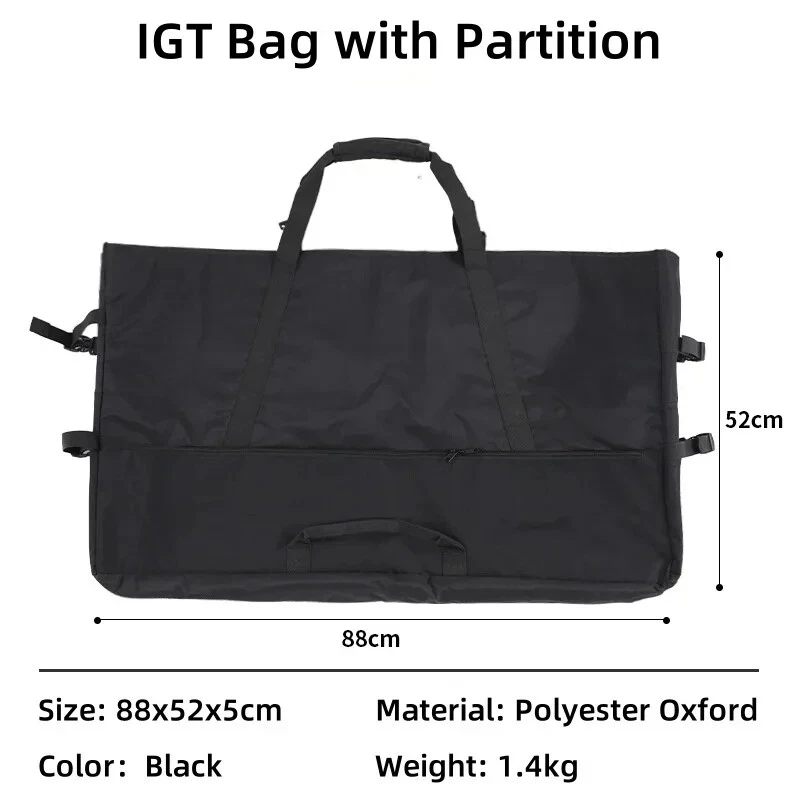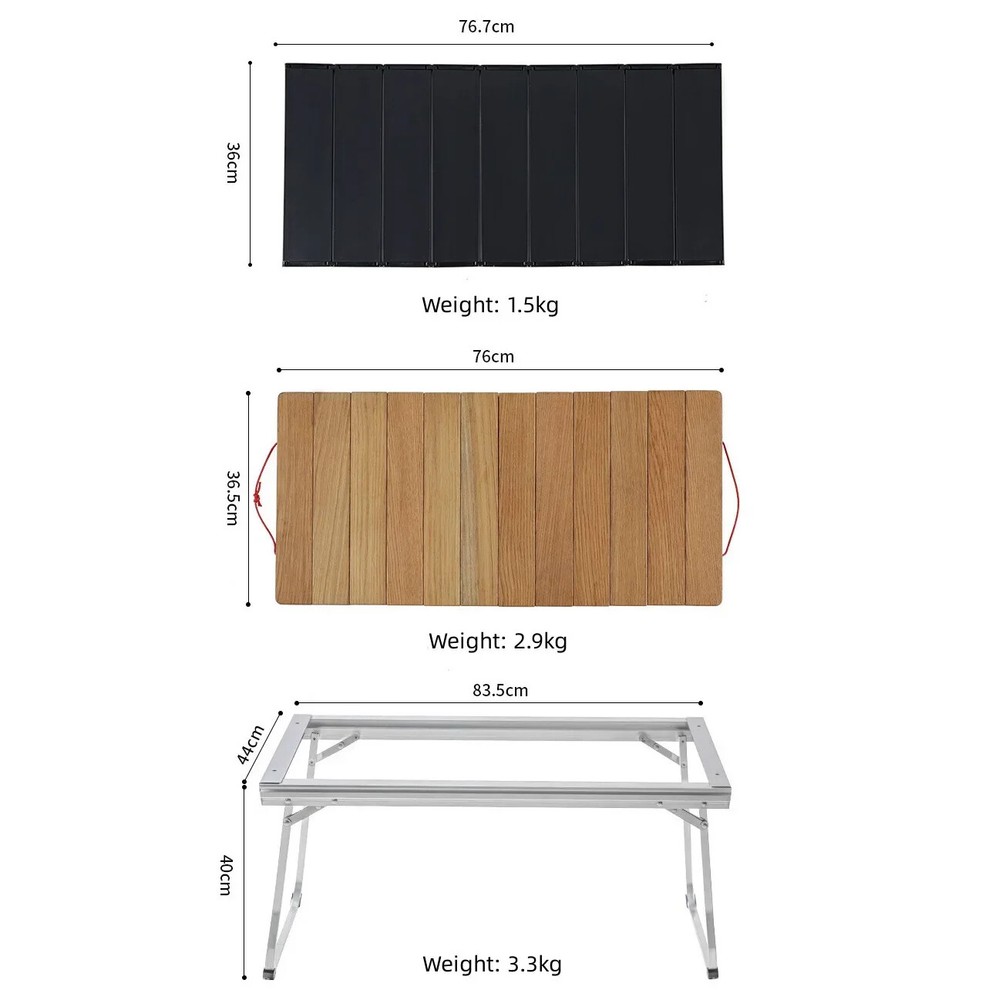 Specification Product Name: IGT Three Unit Framework Product size: 83.5*44*40cm Storage size: 83.5*44*3cm Product material: Aluminum alloy,stainless steel Bearing weight: About 30kg Product weight: about 3.3kg egg roll panel size:76.5*36 egg roll panel weight:1.5kg/2.9kg IGT bag Size: 93.5x6x44.5cm IGT Bag 1: the bag is without partition IGT Bag 2: the bag is with partition Feature 1. A variety of combinations can be used as desired, can be matched with the corresponding specifications of the stove, the splicing is tight and not easy to slip, outdoor barbecue cooking need not worry, is a good helper of camping. 2. Table frame long side guide rail design, can install the gas tank and some tableware or kitchen utensils, etc. 3. The whole table made of aluminum alloy, high strength, light weight, strong bearing capacity, can bear about 30kg. 4. Table plate can be detachable table feet can be folded, after storage does not occupy space, easy to carry. Note Due to manual measurement, there is a tolerance in the product size.