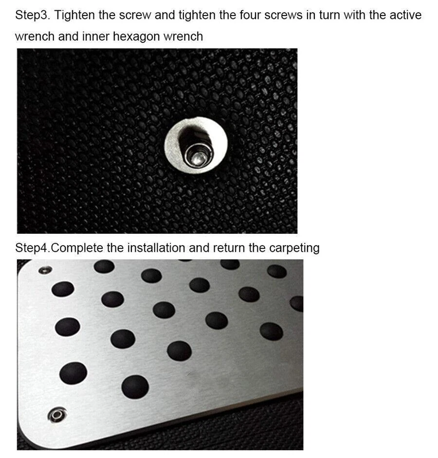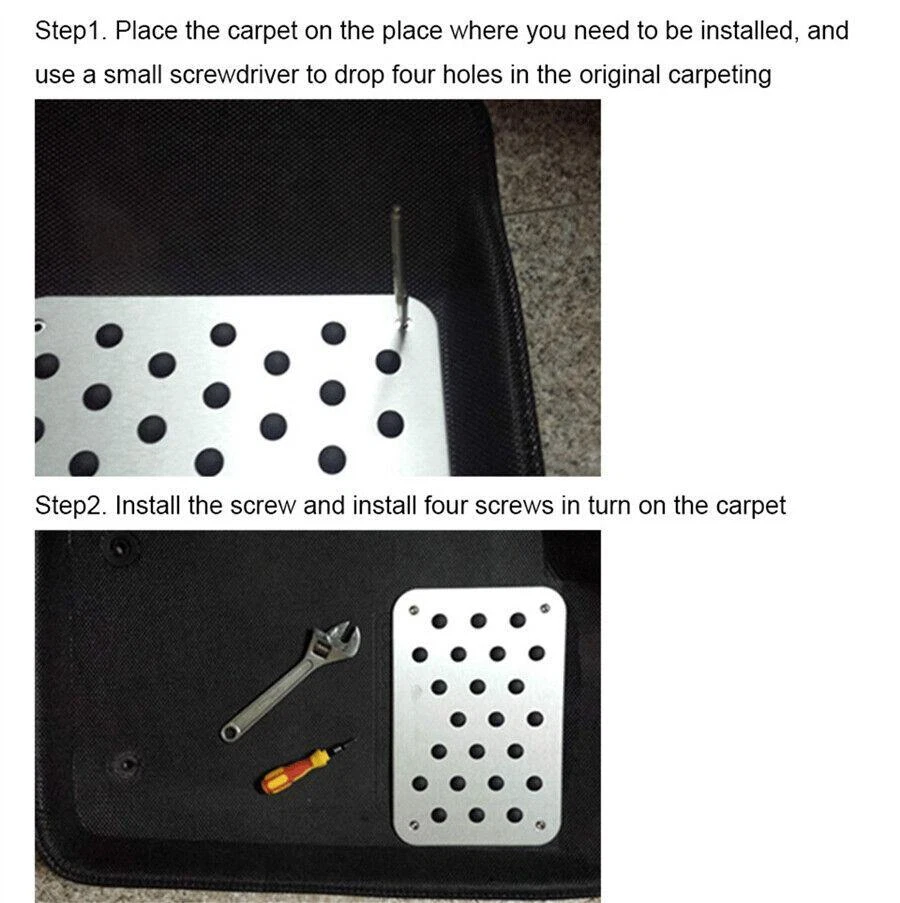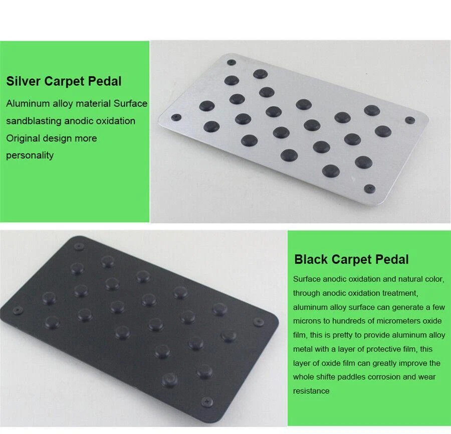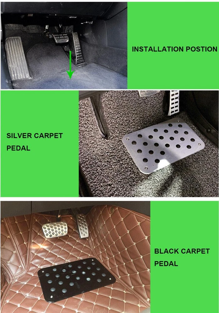 Items Included: Floor Carpet Patch Manufacturer Part Number: NG003 OE/OEM Part Number: Unknowned Universal Fitment: Yes Placement on Vehicle: Front gtin13: Does not apply Country/Region of Manufacture: China Features: Anti-Slip, Easy Installation Manufacturer Warranty: 1 Year Type: Pedal Carpet Pad Vintage Part: Yes Material: Aluminium Alloy,Rubber Brand: Unbranded UPC: Does not apply Color: Silver Performance Part: Yes