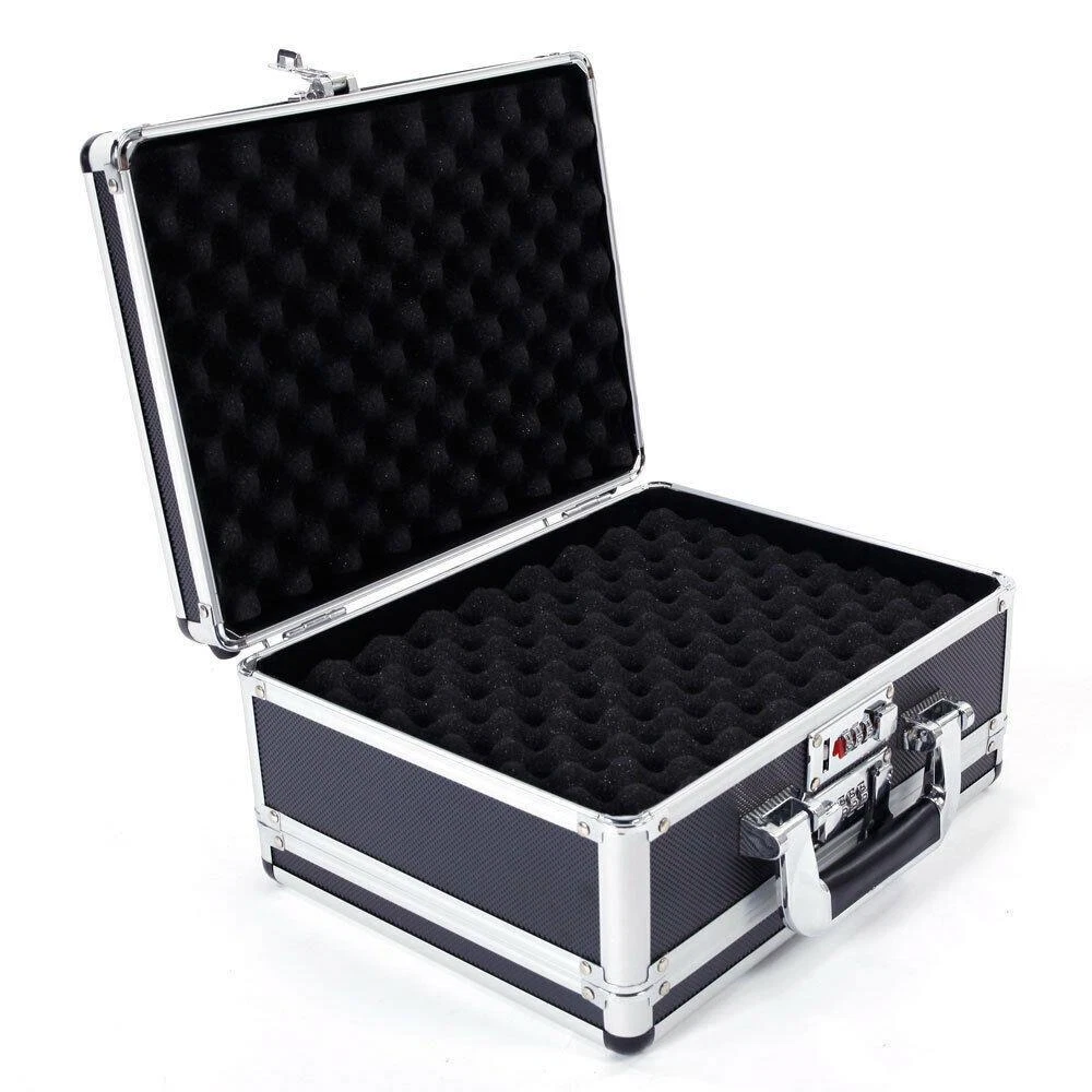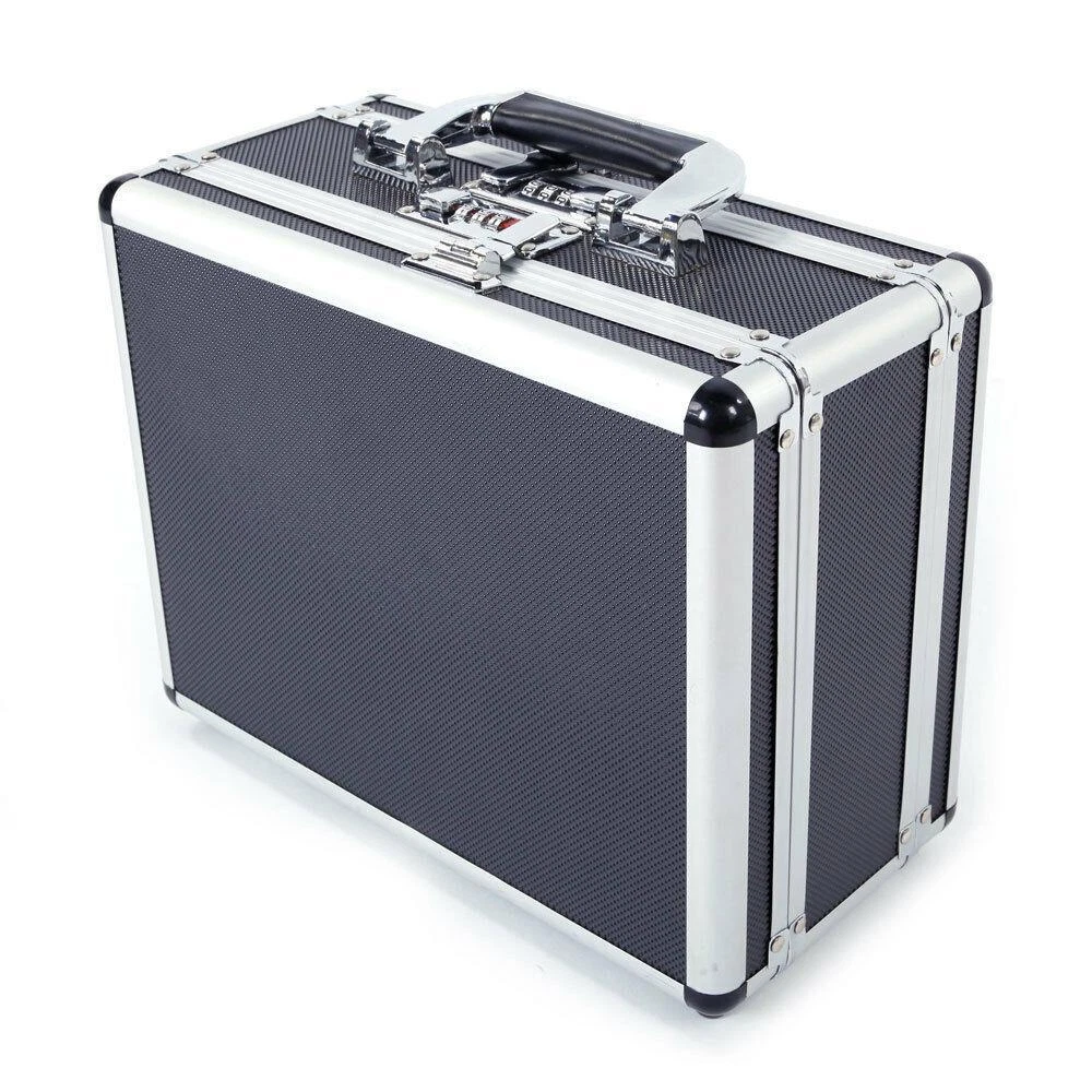 Introductions: With the latest technology, this Aluminum New Framed Locking Gun Pistol HandGun Lock Box Case is made of aluminum & ABS & foam material, meaning you can trust that the case is incredibly durable. This case features digit combination locks, allowing maximum security for your guns. What's more, the safe comes with a high density sponge lining in the interior of the case that provides surrounding support for your guns. With so many advantages, what are you still waiting for? Features: 1. Foam inserts to protect guns from Damage 2. Non-slip handle for easy and comfortable grip 3. Digit combination locks for maximum security 4. Anti-skid bullet feet for case stability in vertical position 5. Flexible switch for ease of open 6. Made of durable aluminum & ABS & foam material Specifications: 1. Material: Aluminum & ABS & Foam 2. Color: Black 3. Dimensions: (11.81 x 5.91 x 9.05)" / (30 x 15 x 23)cm (L x W x H) 4. Weight: 2.87 lbs / 1.3 kg Package Includes: 1 x Gun Case 1 x Instruction