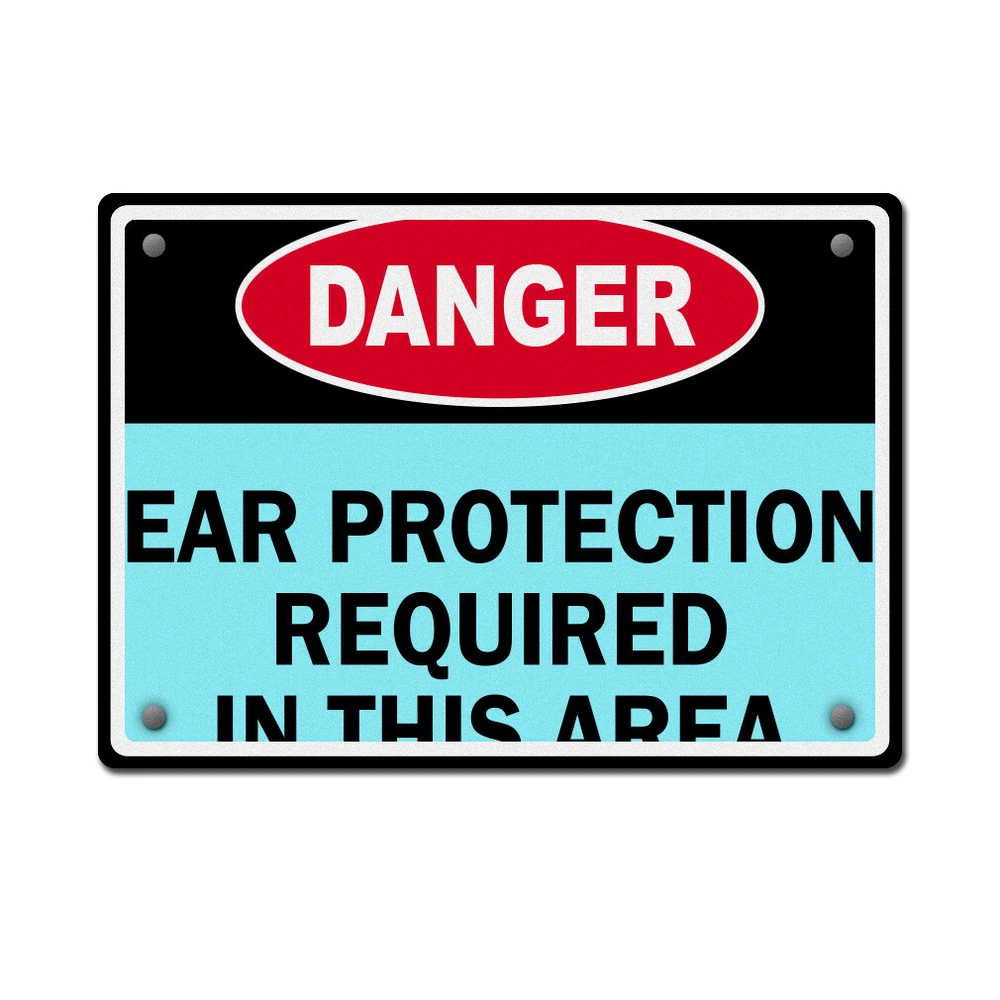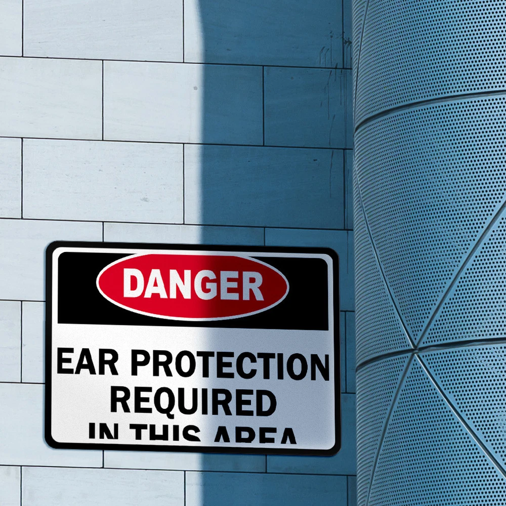 Signs Outdoor/Indoor Metal Personalized sign Protect yourself and avoid accidents with our metal warning sign. Communicate instructions and safety warnings efficiently to others. The text reads: danger ear protection required in this area . Perfect for businesses looking for: Half Way Border metal signs, Eye & Ear Protection Required cut signs, signs, wall signs, or yard signs. Make sure your message or instruction catches the attention and is being seen as well as respected. Also available in different shapes and sizes, you will always find the perfect fit for you! Our designs are professionally printed with state-of-the-art equipment guaranteed to last for years. We have more than 12 years of experience in the printing industry to offer you stunning detail and rich lifelike colors. All prints are carefully made in our lab in Tampa, Florida. BEST METAL SIGN ON THE MARKET! **PREMIUM QUALITY: Our industrial metal signs are made of durable .040IN high quality aluminum that will last for decades. Very clear, bold, easy to read lettering that can be read from the distance. **INDOOR & OUTDOOR: Our aluminum yard metal signs can be used indoor as well as outdoor. They can be easily mounted on any surfaces such as walls, doors or fences with zip ties, screws or nails (NOT INCLUDED). **EASY INSTALLATION: Our indoor and outdoor signs come with pre-drilled holes for an easy installation on any surfaces. We left you the easy part... You just have to make sure it is straight! **WEATHERPROOF: Our personalized signs are especially treated against UV, humidity and water thanks to our ink curation. As a result, they will not rust or fade which make them perfect to use indoor and outdoor. **UNIQUE DESIGNS AND GRAPHICS: We put a lot of thought and time in our design process. We are proud to offer you the best selection of informative signs graphic designs, as well as the best variety of safety and ansi-iso compliant designs. Whether you are a business owner or a homeowner, you will be 100% satisfied with our metal signs. PAYMENT TERMS