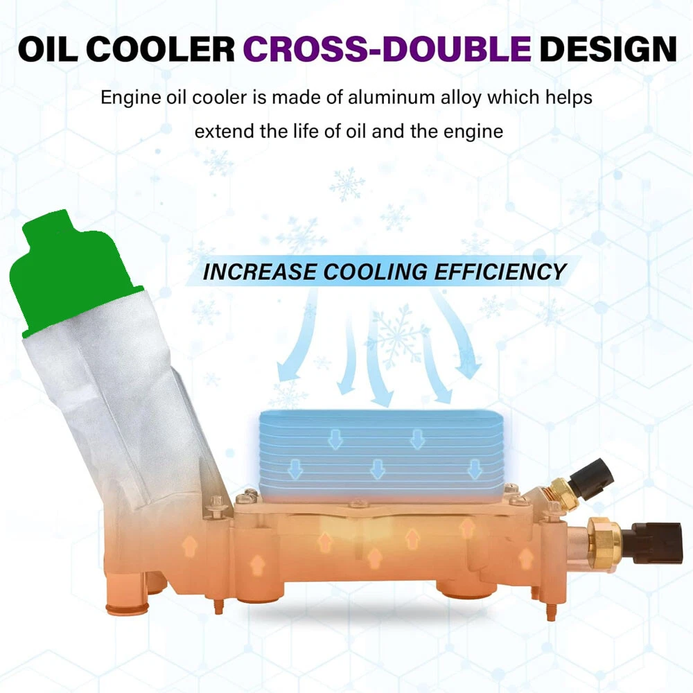 Product Description: Oil filter Housing in Upgrade Housing NOTE:Stop installing the plastic Oil filter adapter, you need to install new one immediately. OEM Part Number 926-959, 926-876, 5149062AA, 5149062AB, 5149077AB, 5149096AB, 5184294AC, 5184294AD, 5184294AE, 5184304AE, 5184304AF, 56044777AA, 68060337AA, 68105583AA, 68105583AB, 68105583AC, 68105583AD, 68105583AE, 68105583AF, 68105583AG, 68308741AA, 68308741AB, 68308741AC, 68308741AF, 68310865AA, 68310865AB, 68310865AC, 68310865AF, 68365925AA, 68365925AB, 68365925AC, 68365925AD, 68365931AA, 68365931AB, 68365931AD, 68596317AA. Fitment: Fit for V6 3.6L Pentastar Engine Fit for 2011-2016 Chrysler 200 Fit for 2011-2016 Chrysler 300 Fit for 2011-2016 Chrysler Town Country Fit for 2011-2014 Dodge Averger Fit for 2011-2016 Dodge Challenger Fit for 2011-2016 Dodge Charger Fit for 2011-2016 Dodge Durango Fit for 2011-2016 Dodge Grand Caravan Fit for 2011-2016 Dodge Journey Fit for 2011-2016 Jeep Grand Cherokee Fit for 2012-2016 Jeep Wrangler Fit for 2014-2016 Jeep Cherokee (3.2L) Fit for 2012-2013 Ram C/V Fit for 2013-2016 Ram 1500 Fit for 2014-2016 Ram Promater 1500 Fit for 2014-2016 Ram Promater 2500 Fit for 2014-2016 Ram Promater 3500 Read in detail below before you order it from us ✅ This is a full assembly oil filter assembly included; Upgrade Housing, Plastic Oil cap, oil filter, temperature switch, oil pressure sensor, oil cooler, 5 pcs bolts, manifold seals ✅ We tested the product 100% for leaking before shipping out ✅ Inspect all seals and O-ring carefully before installation. ✅ Clear any residues in the engine valley after the old oil filter adapter removed ✅Make sure the Housing seated fully in the engine valley, gap checking is necessary ✅ Insert the cooling pipe fully on the tube and put the clamp correctly. Sales Term: * Replacement for any shipping defects. * Our Warranty covers 1 years. * No reimbursements will be given for delay, labor, mileage, or any other cost involved in installation or re-installation of the auto parts in question Packge includues: Upgraded Metal Housing Plastic Oil cap, oil filter, temperature switch, oil pressure sensor, oil cooler, 5 pcs bolts, manifold seals Notes: Customer is responsible for shipping parts back for inspection and replacement. We provide part numbers and high resolution pictures. lease check part numbers and pictures for compatibility.Because this is a functional part, not a cosmetic part, the color of the cover is random, it does not affect the use, hope to understand.